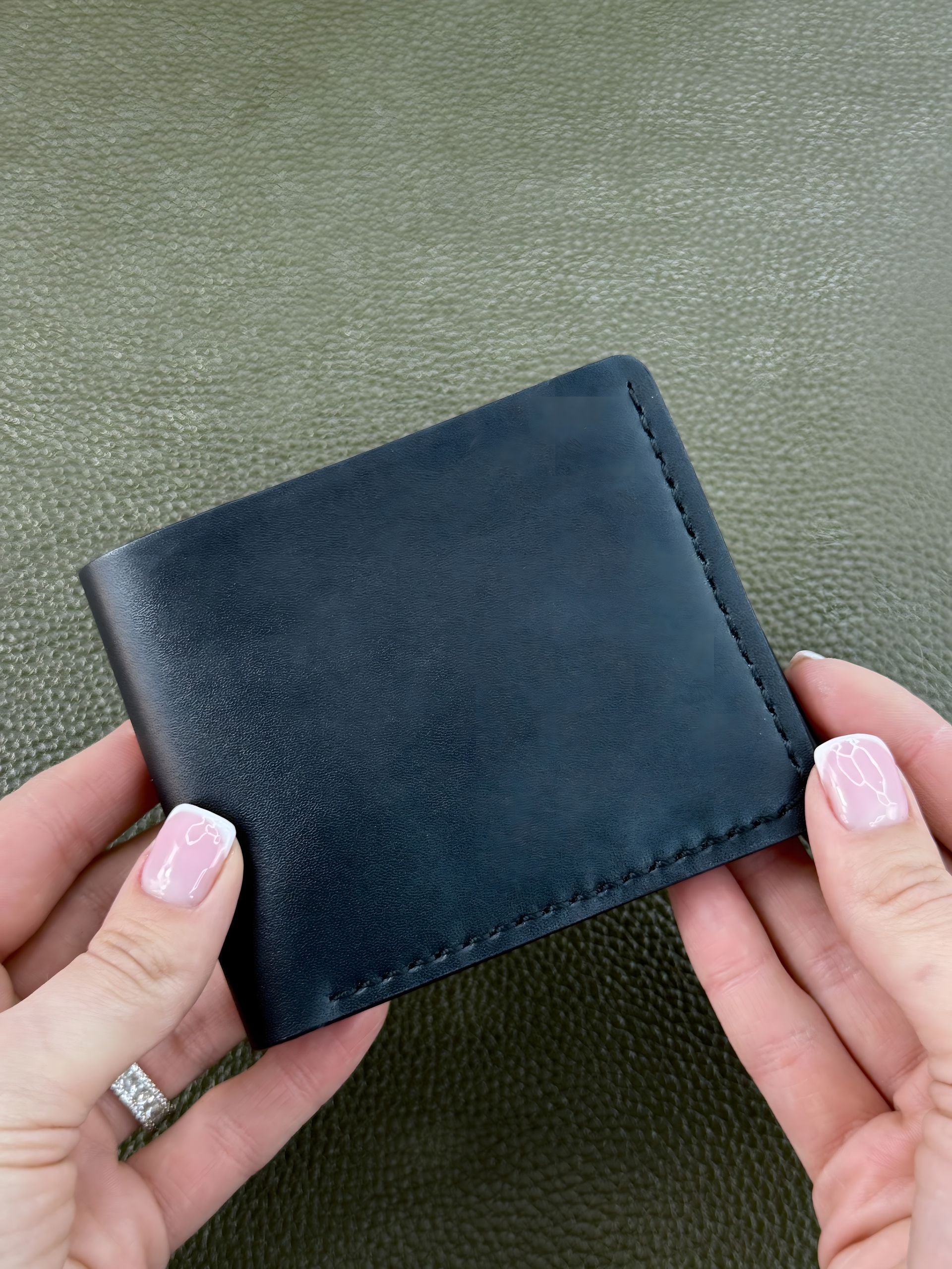 Чоловічий гаманець-біфолд з натуральної шкіри Saffiano синій, ручна робота