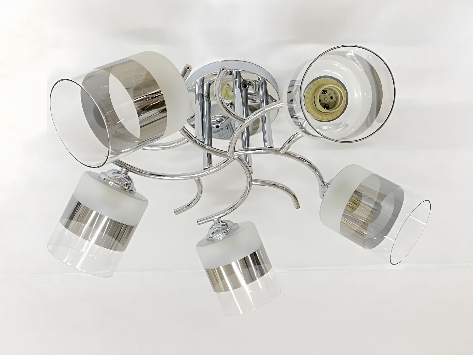 Тип Патрона: Оснащена п'ятьма стандартними патронами E27, що надає максимальну гнучкість у виборі лампочок. Ви можете встановити енергоефективні LED-лампи, класичні лампи розжарювання або галогенні, обираючи бажану потужність, яскравість та колірну температуру (від теплого до холодного світла) для створення ідеальної атмосфери.