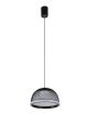 Люстра має оригінальний плафон у формі купола, виконаний із сталі з сітчастим покриттям, що надає їй особливої легкості та сучасності. Внутрішня частина плафона оснащена кільцевим LED-модулем, що створює ефектний світловий контур. Це робить світильник не лише джерелом світла, а й декоративним елементом. Чорний колір робить люстру універсальною для різноманітних інтер'єрів: від лофту до мінімалізму та хай-теку.
