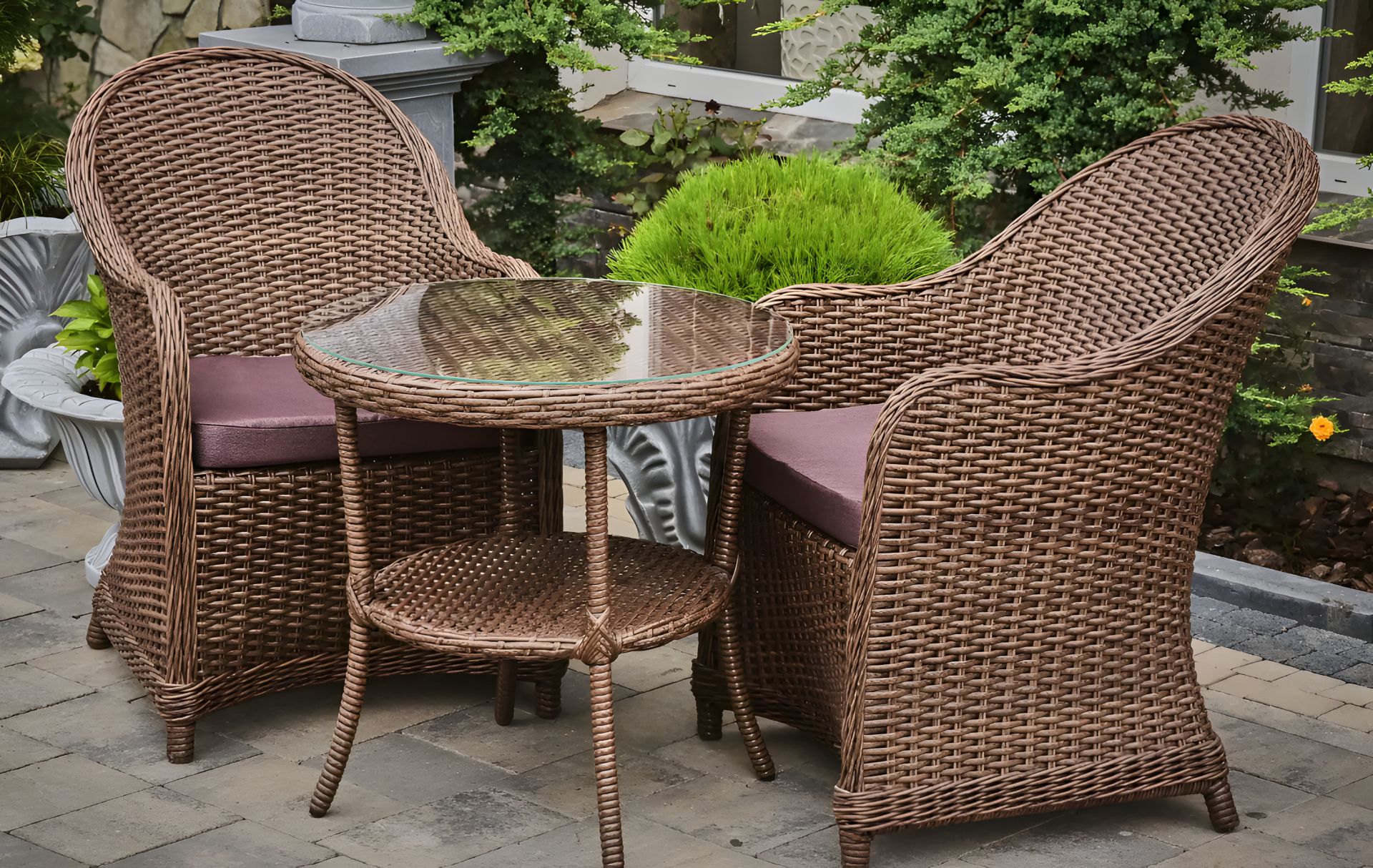 - Вишукане плетіння з штучного ротангу надає меблям елегантного вигляду.