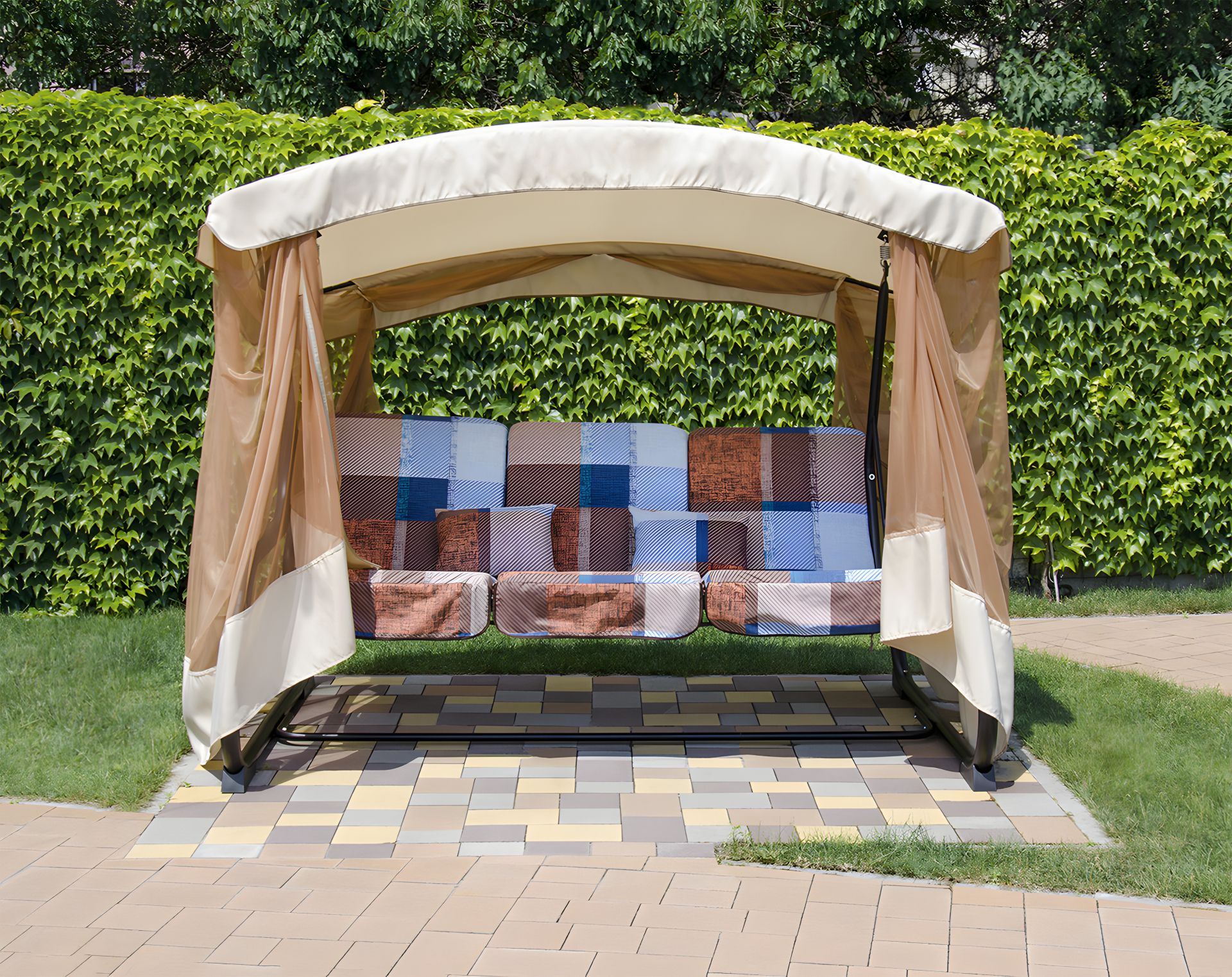 Садова гойдалка "Сімейна" (Бязь Lux, Велика коричнево-сіра клітинка)