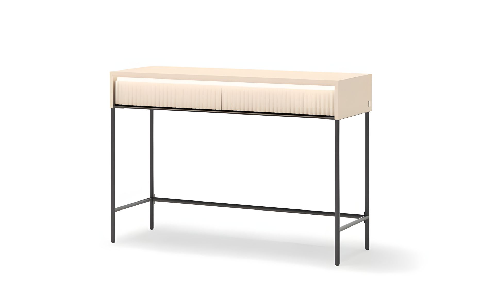 Стіл туалетний Тренд з двома шухлядами — ідеальний вибір для сучасного інтер’єру. Він вирізняється елегантною, сучасною формою та практичним функціоналом. Прості лінії, якісні матеріали та нейтральна палітра кольорів роблять його не лише функціональним, а й візуально привабливим елементом інтер’єру. Це ідеальне місце для щоденних б’юті-ритуалів, зручного зберігання косметики чи прикрас і створення власного куточка для догляду. Основні характеристики: Завдяки поєднанню пісочно-бежевого кольору з чорними акцентами, він легко вписується в будь-який дизайн — від скандинавського до мінімалістичного чи гламурного стилю. Розміри столика — 1120x400x780 мм, що дозволяє зручно розмістити його навіть у невеликих спальнях. Він оснащений двома висувними шухлядами з механізмом відкривання натисканням (push-to-open) та синхронізатором, що додає комфорту під час користування. Внутрішнє оздоблення ящиків виконано в чорному кольорі, що підкреслює загальний стиль колекції. Для виготовлення столу використано ламіновану ДСП (16 мм) для корпусу та стільниці, з обробкою крайкою ABS товщиною 1,00 мм з усіх чотирьох боків. Фасади виконані з МДФ плити 18 мм, а задня стінка — з HDF-плити з ламінованим оздобленням. Усі матеріали забезпечують надійність, стійкість до щоденного використання та довговічність. Переваги туалетного столика Тренд / Trend: Освітлення для атмосфери та зручності. У комплекті передбачене вбудоване LED-освітлення, яке не лише створює приємну атмосферу, а й забезпечує комфортне користування столиком у будь-який час доби. Освітлення класу А++ є енергоефективним та довговічним. Комфорт завдяки технологіям. Справжньою перевагою є механізм відкривання шухляд push-to-open, який дозволяє відкривати їх легким натисканням — без ручок чи зайвих зусиль. А вбудований синхронізатор забезпечує плавну та рівномірну роботу обох боків, що робить користування ще приємнішим. Це не лише зручно, а й додає меблям візуальної легкості та сучасного вигляду. Вишукане поєднання кольорів. Поєднання пісочно-бежевого кольору з чорними елементами — це тренд сучасного дизайну. Така кольорова гама виглядає дорого, лаконічно та легко вписується в будь-який інтер’єр. Беж додає тепла та м’якості, а чорні акценти надають глибини та характеру. Разом це створює вишукану атмосферу спокою і стилю у вашій спальні. Частина стильної колекції TREND Стіл туалетний 2ш входить до колекції меблів TREND, яка створена для сучасних інтер’єрів, де важливі не лише функціональність, а й естетика. Якщо ви бажаєте облаштувати спальню в єдиному стилі — поєднайте столик із ліжком, шафою-купе, тумбами та комодом із тієї ж серії. Разом ці меблі створюють гармонійний, стильний та завершений інтер’єр, який вражає з першого погляду.