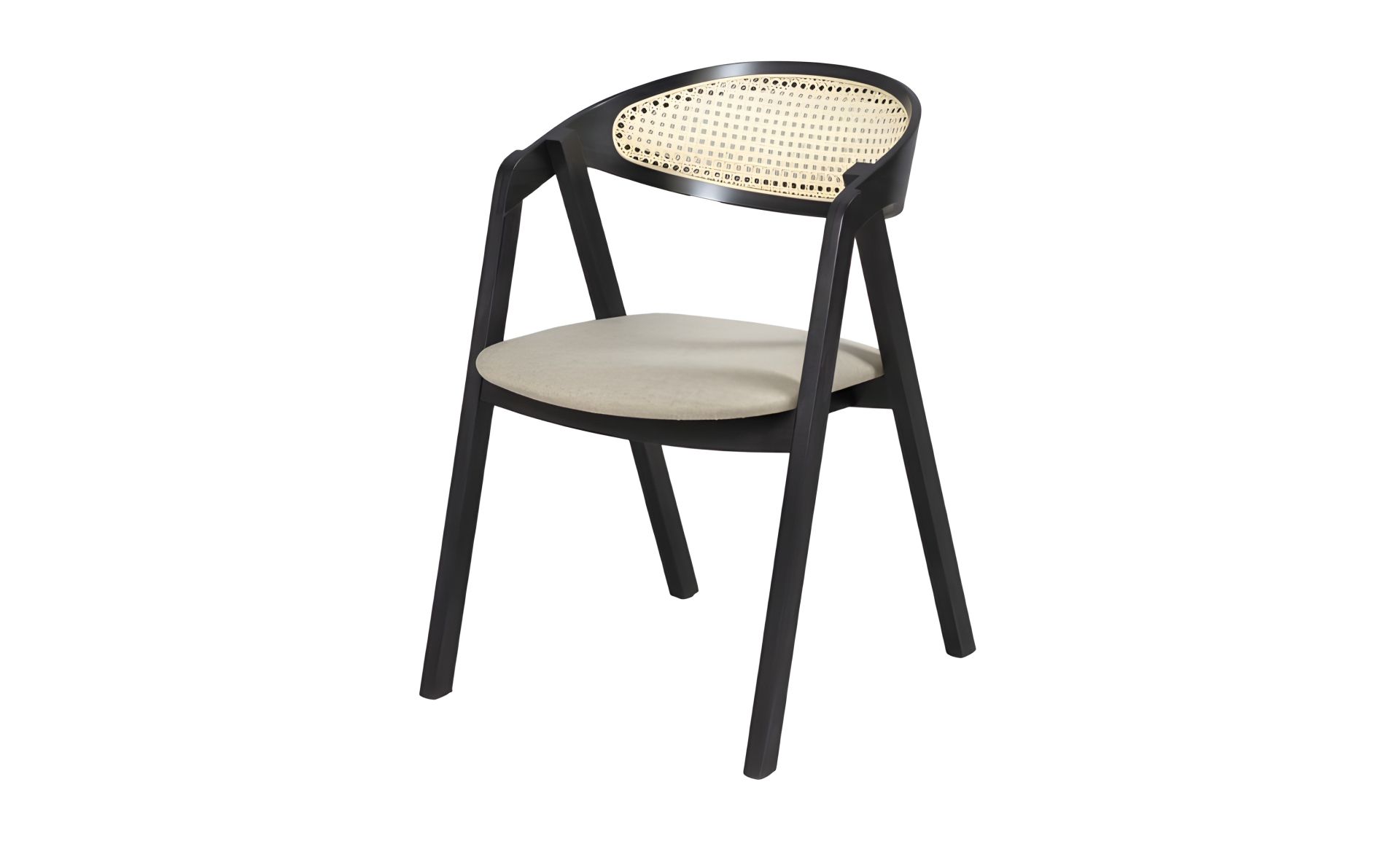 Стілець Гуру масив дерева Cane, сидіння тканина беж чорний 526x558x782