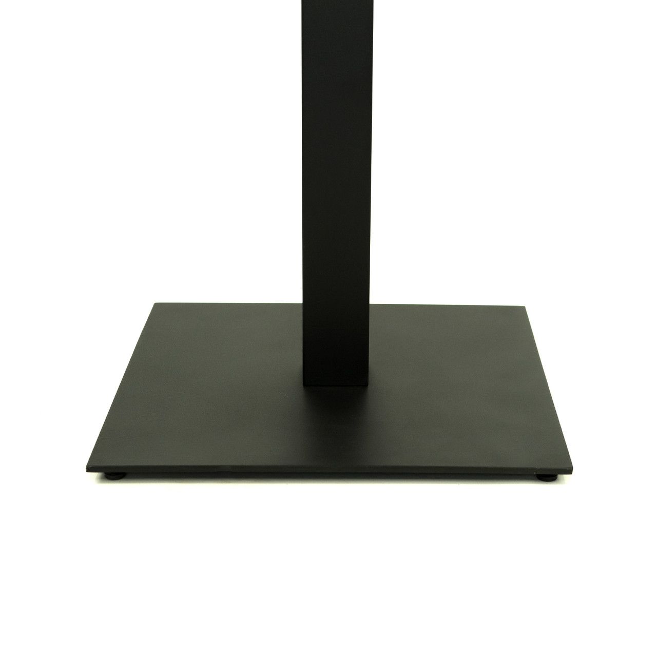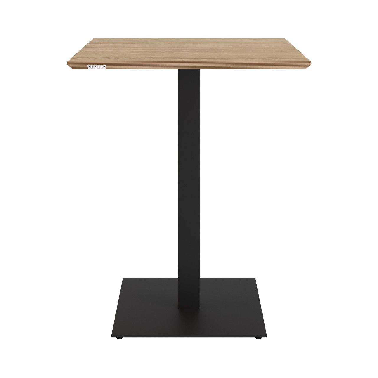 Металевий каркас столу складається із двох частин. Основа 400х400 товщиною 6 мм. І квадратна стійка з труби 60х60 мм товщиною стінки 1,5 мм. До стійки приварена пластина для кріплення стільниці. Опора столу виконується з металу з порошковим фарбуванням. Він робить стіл більш стійким до вологи та механічних пошкоджень.