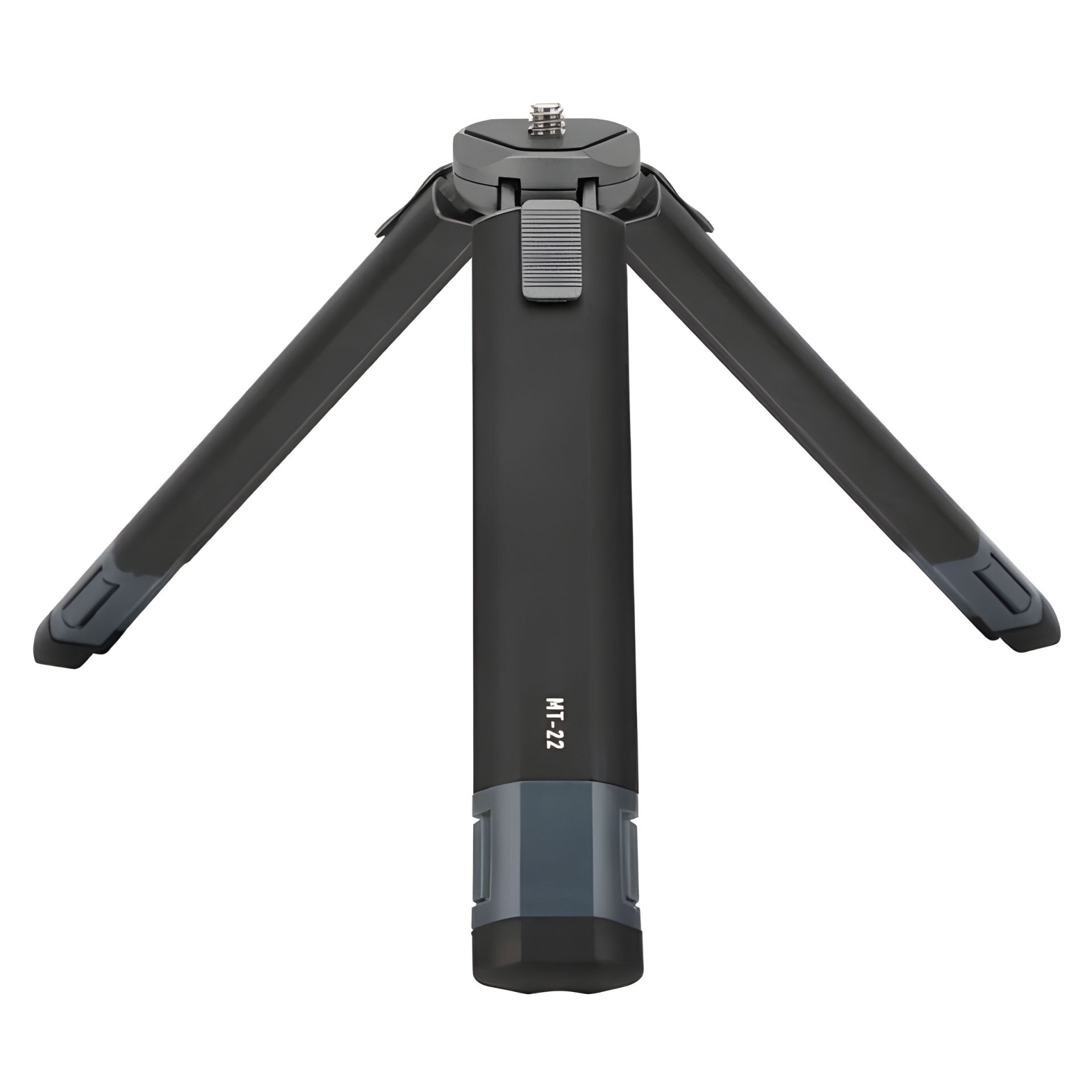 Ulanzi MT-22 — це міцний та компактний металевий міні-штатив, призначений для встановлення дзеркальних, бездзеркальних, компактних та екшн-камер, а також смартфонів (при використанні адаптера). Він ідеально підходить для розміщення знімального обладнання на рівних поверхнях: столі, підлозі, полиці та інших.