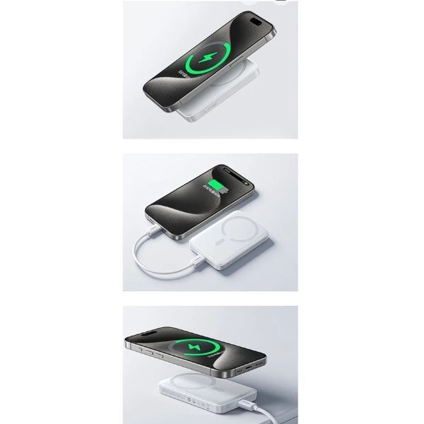 Павербанк підтримує бездротову зарядку MagSafe, а також швидку дротову зарядку потужністю до 22.5W, що дозволяє заряджати телефони, навушники та інші гаджети максимально швидко. Ємності 10000 mAh вистачає для 1–2 повних зарядок смартфона, що робить пристрій ідеальним для подорожей і щоденного використання.