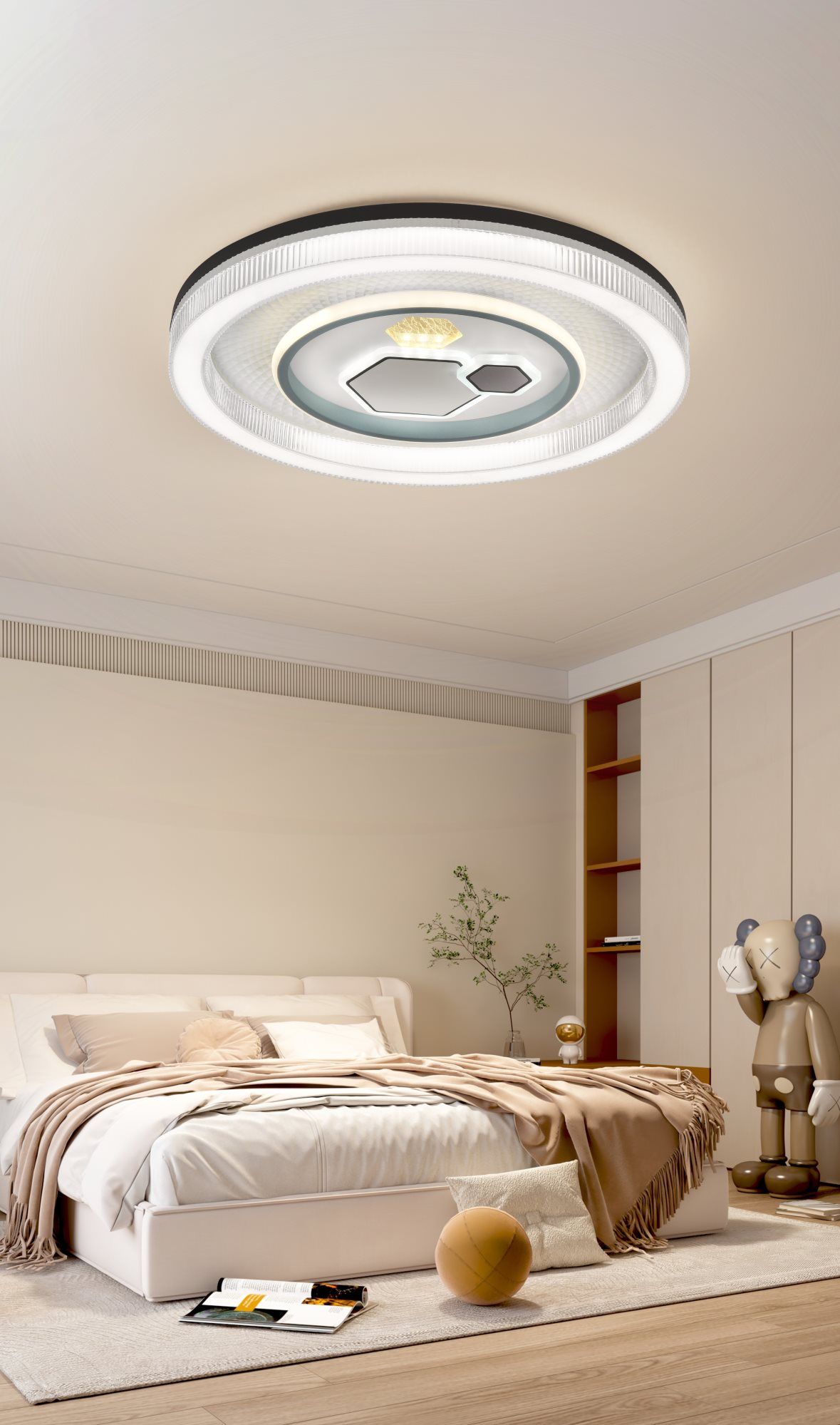 Модель оснащена вбудованими світлодіодами та має вражаючу загальну потужність 50W+55W, що дає потужний світловий потік у діапазоні 4000-4500 Lm. Ця особливість дозволяє ефективно освітлювати значну площу. Керування здійснюється традиційним способом, оскільки пульт дистанційного керування не передбачено, що робить використання люстри простим та зручним.