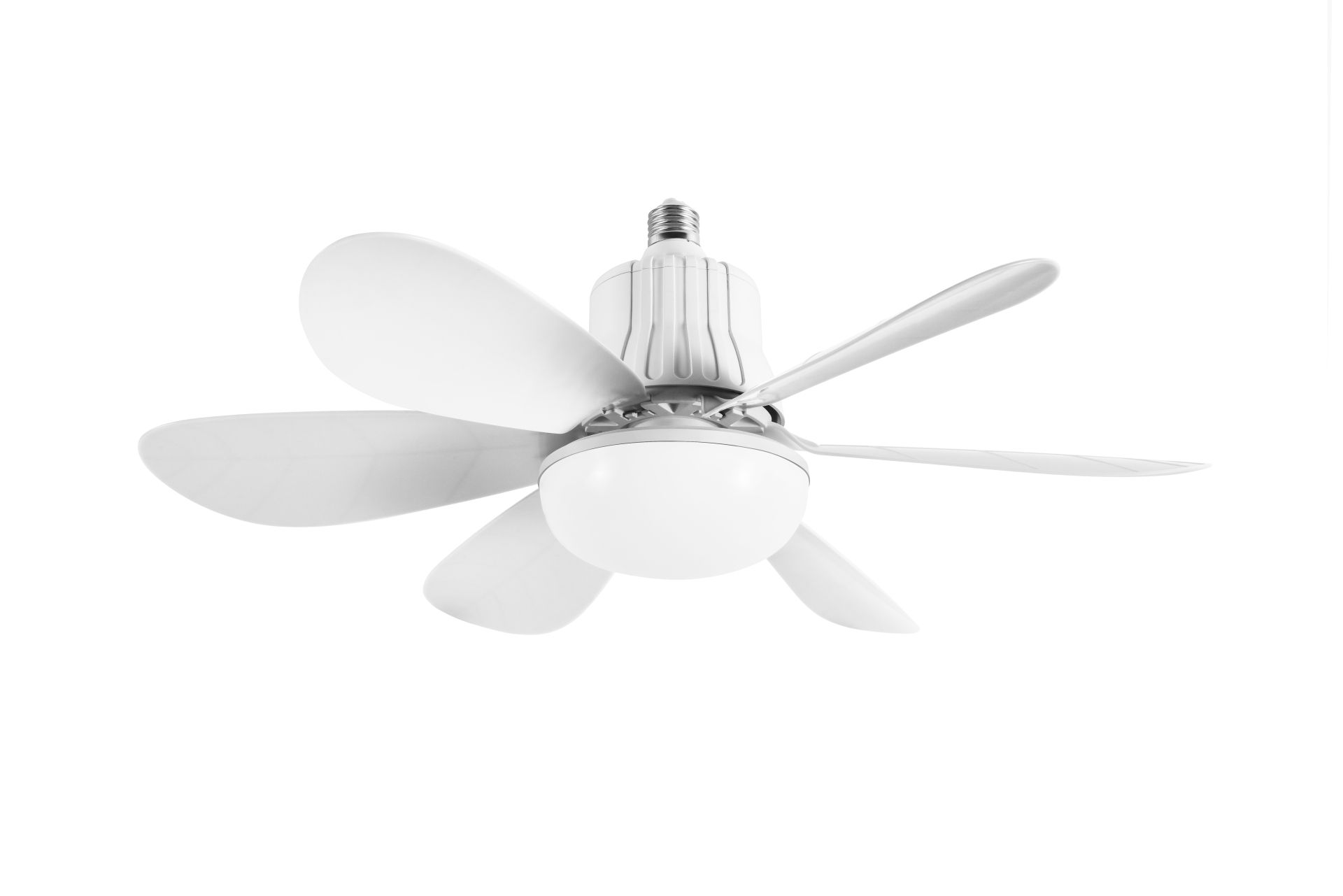 Модель оснащена патроном E27, тому потужність і світловий потік залежатимуть від характеристик встановленої вами лампочки. Вентилятор забезпечує додаткову циркуляцію повітря. У комплекті до люстри йде пульт дистанційного керування, що дозволяє зручно налаштовувати режими роботи вентилятора та керувати освітленням.