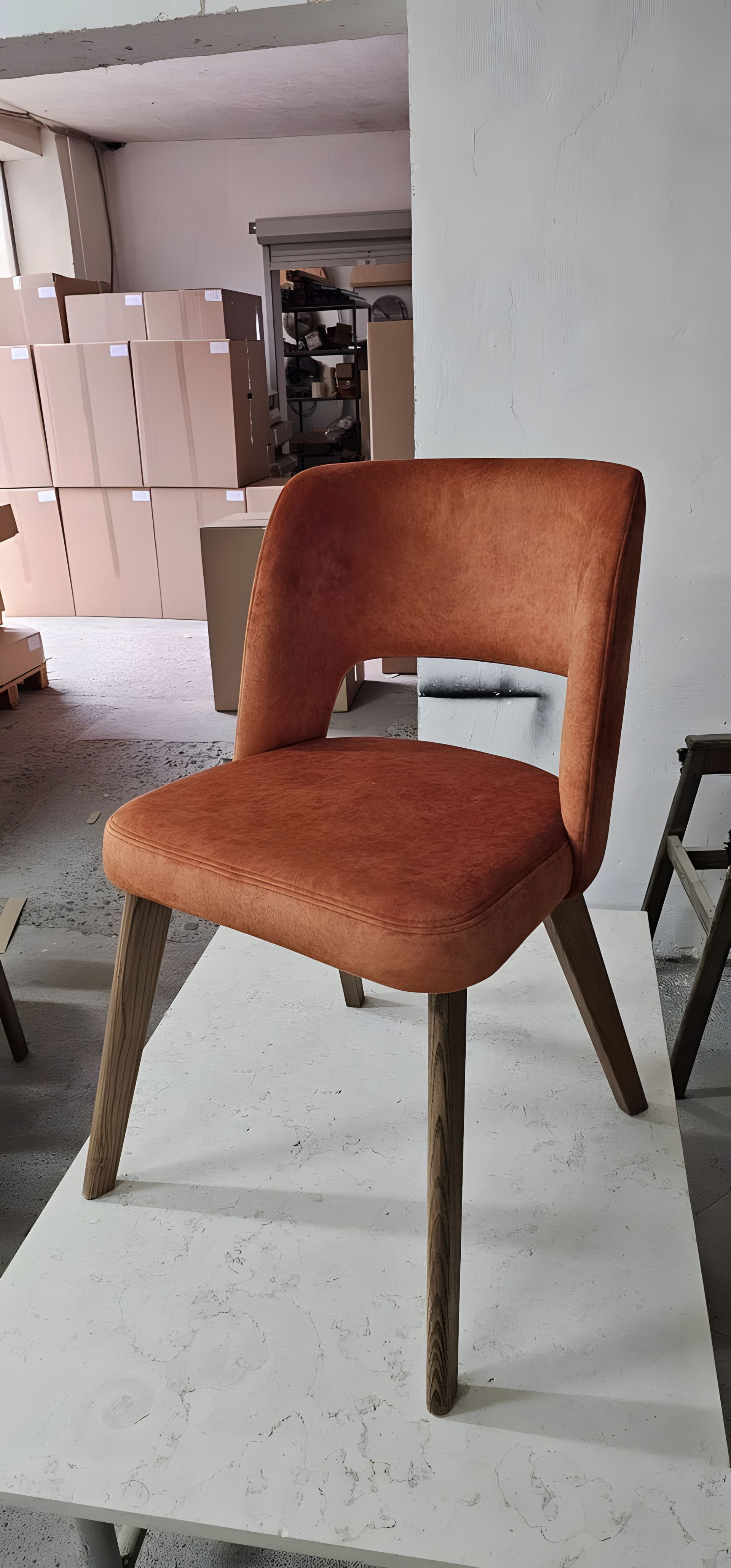 Спинка невисока і напівкругла, тому стілець добре поєднується зі столом будь-якої форми (круглі, квадратні, прямокутні) і не краде вільний простір.