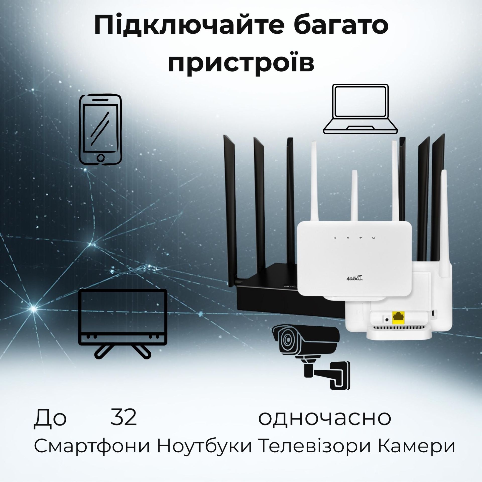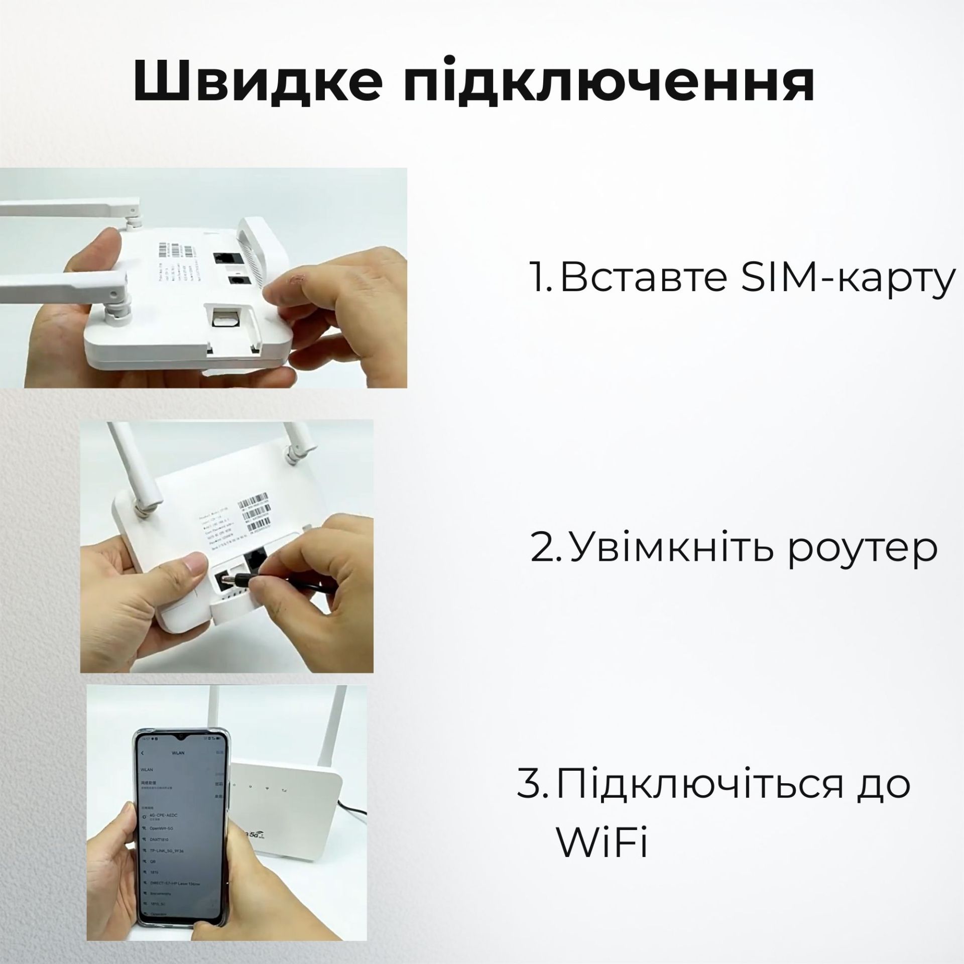 Роутер працює з SIM-картою мобільного оператора та дозволяє роздавати інтернет на смартфони, ноутбуки, телевізори, IP-камери, комп’ютери та інші пристрої. Завдяки формату LTE CPE модель добре підходить для квартири, приватного будинку, дачі, офісу, магазину, відеоспостереження та резервного інтернету.