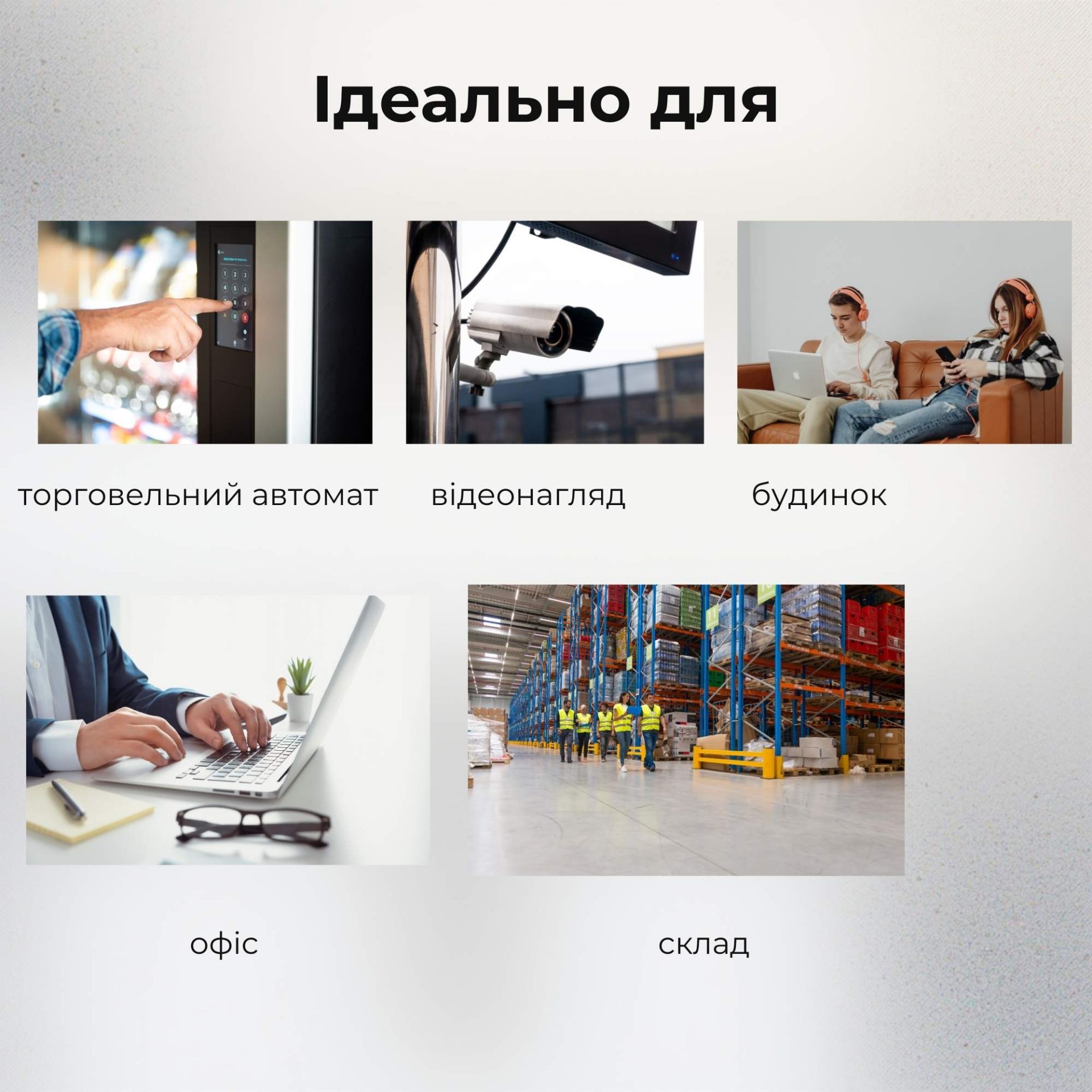- зручно для камер відеоспостереження, Smart TV, ПК і ноутбуків