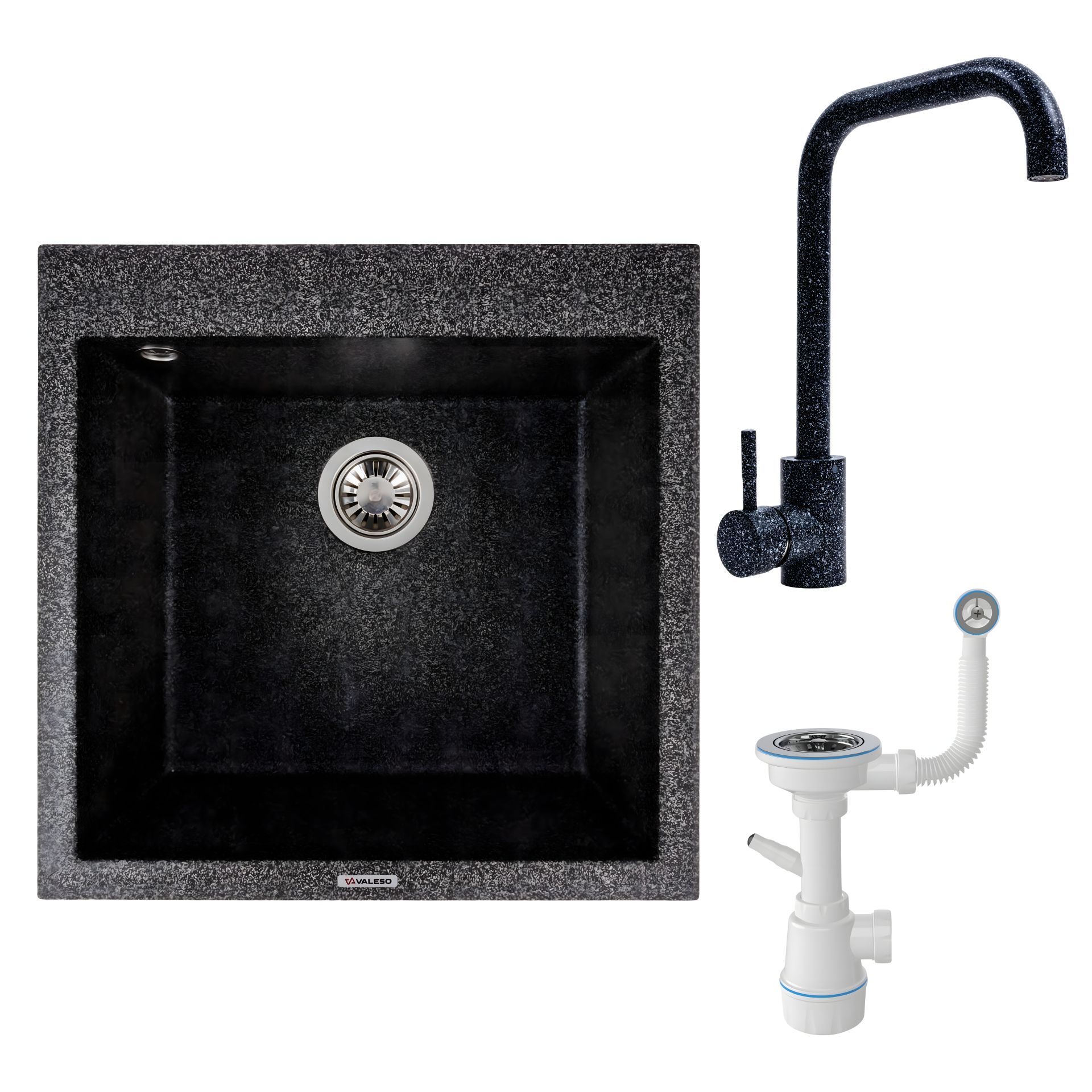 Комплект: Гранітна мийка 5050 VALESO GALAX + NS02A Змішувач + Сифон (Графіт)