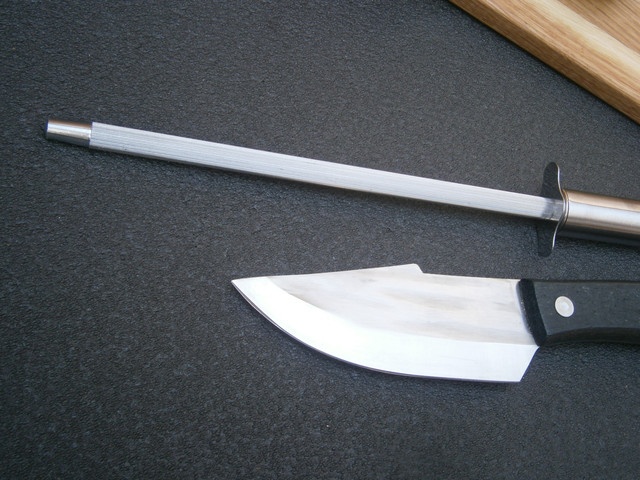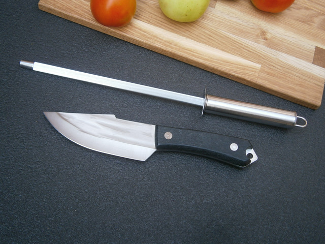 Виготовлений ніж із нержавіючої сталі 5Cr13MoV (0,5% вуглець, 13% хром, молібден, ванадій), що відрізняється високими показниками корозійної стійкості, а також простотою виправлення вертляної кромки.