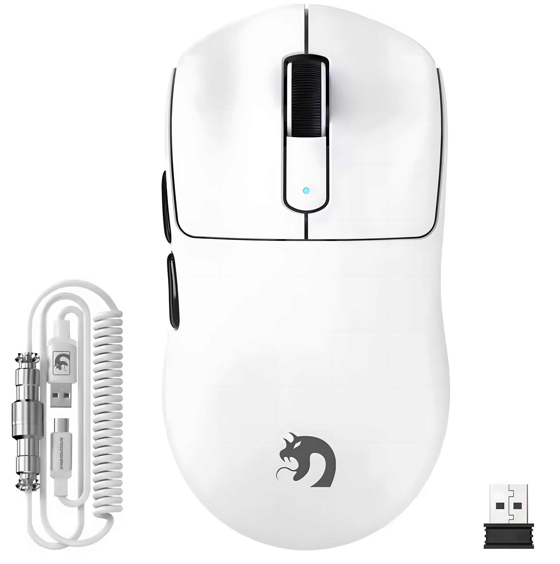 Ігрова Миша MAMBASNAKE M3 з спіральним кабелем, PAW3395PRO, 40 000 DPI, мікроперемикач Omron Біла