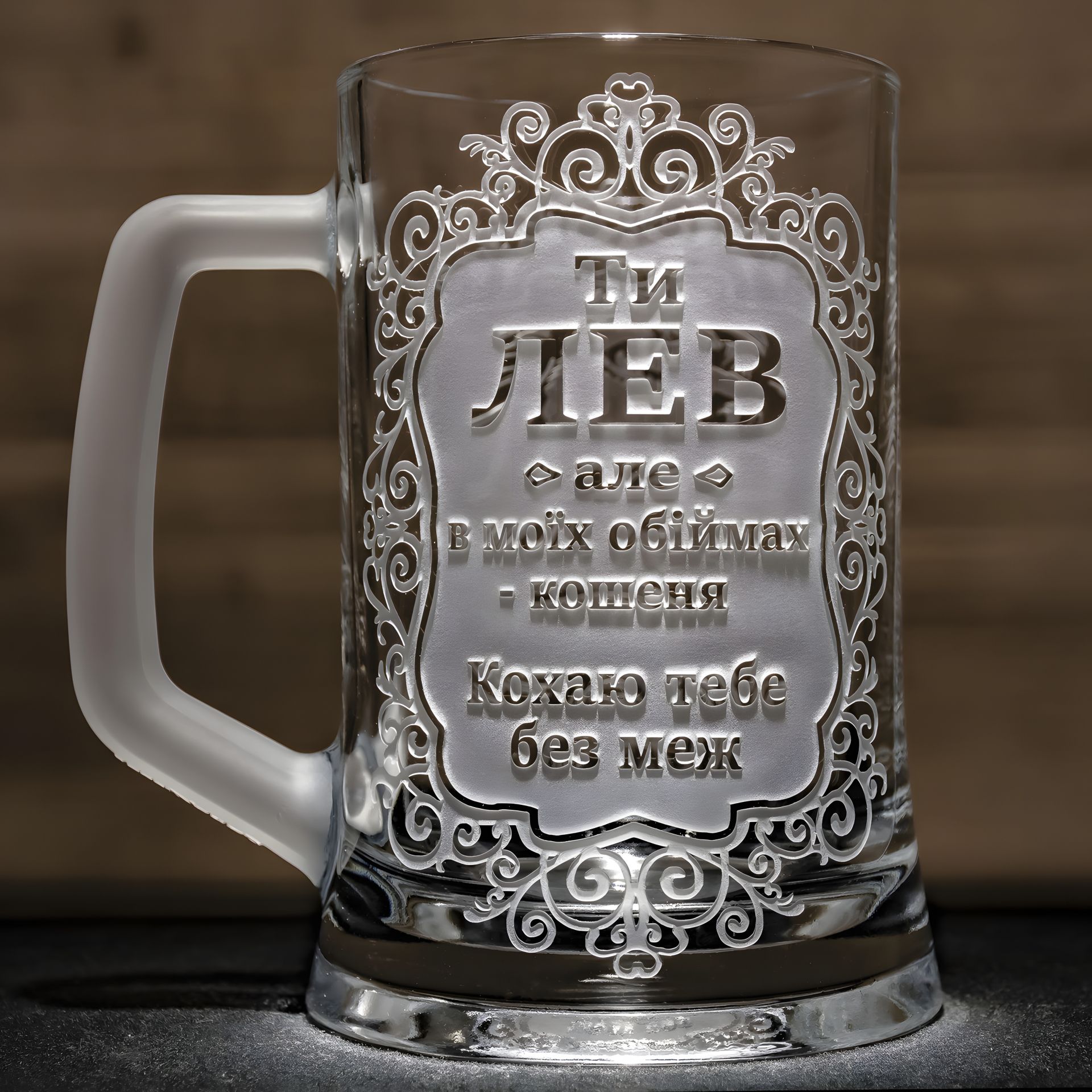 Пивний келих з гравіюванням - подарунок для коханого чоловіка "Ти Лев"