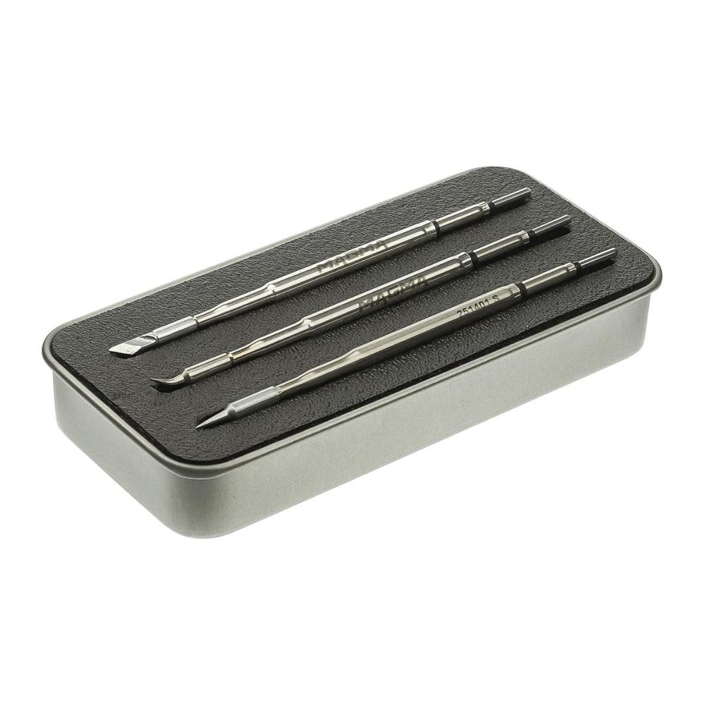 - Широкий вибір картриджів і форм жала розширює завдання - від найтоншого SMD-монтажу до роботи з масивними контактами.