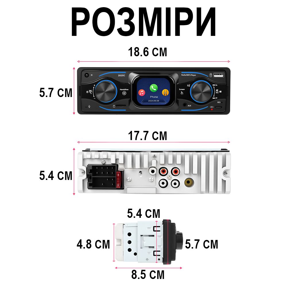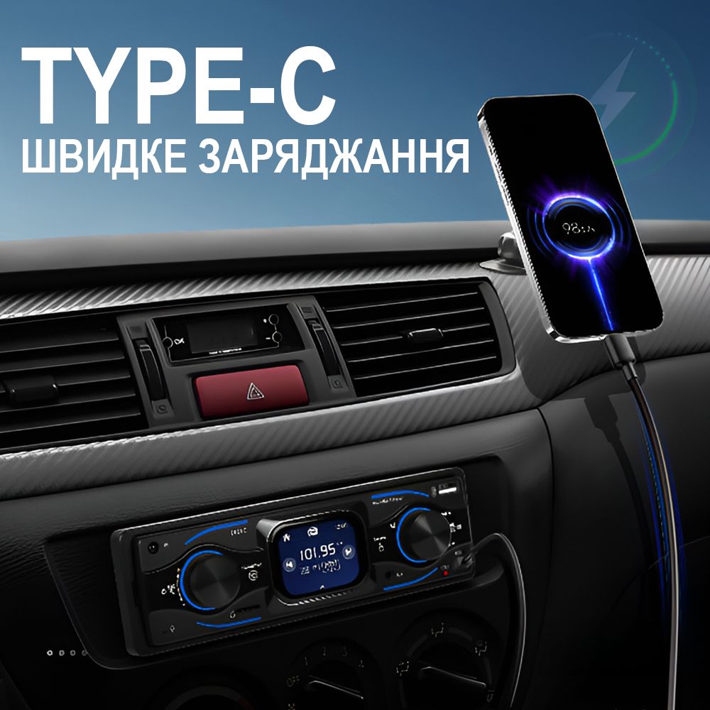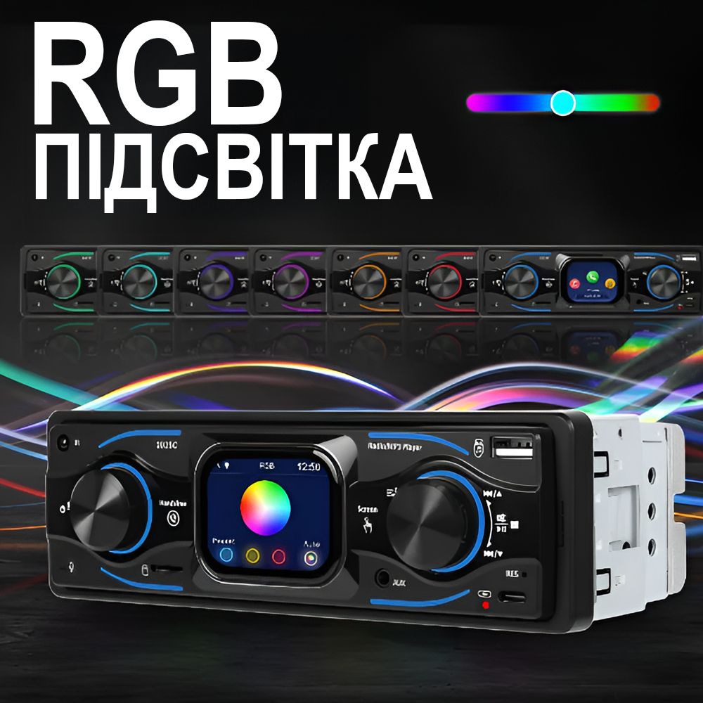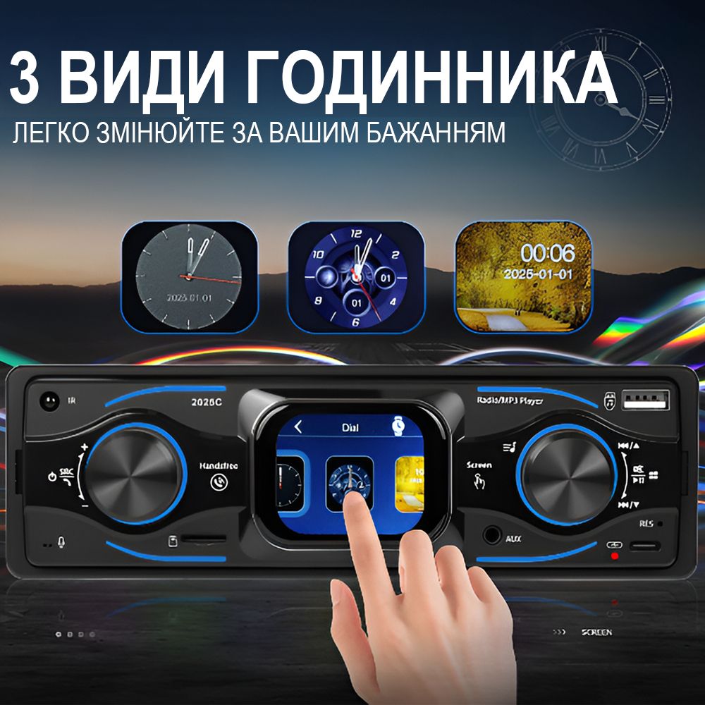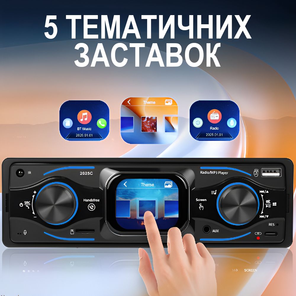 Автомагнітола з сенсорним екраном, Bluetooth, USB/Type-C, FM-радіо та RGB підсвіткою