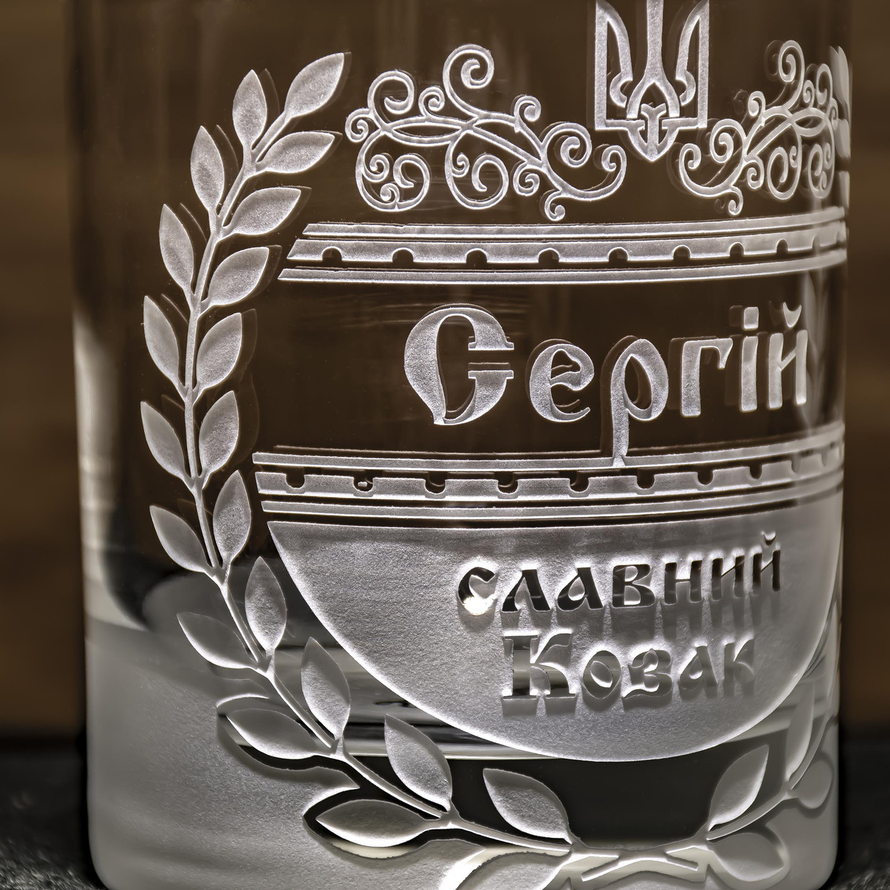 Сувенірна склянка для води та віскі з ручним механічним гравіюванням вашого напису - привітання до дня народження, в подарунковій коробці