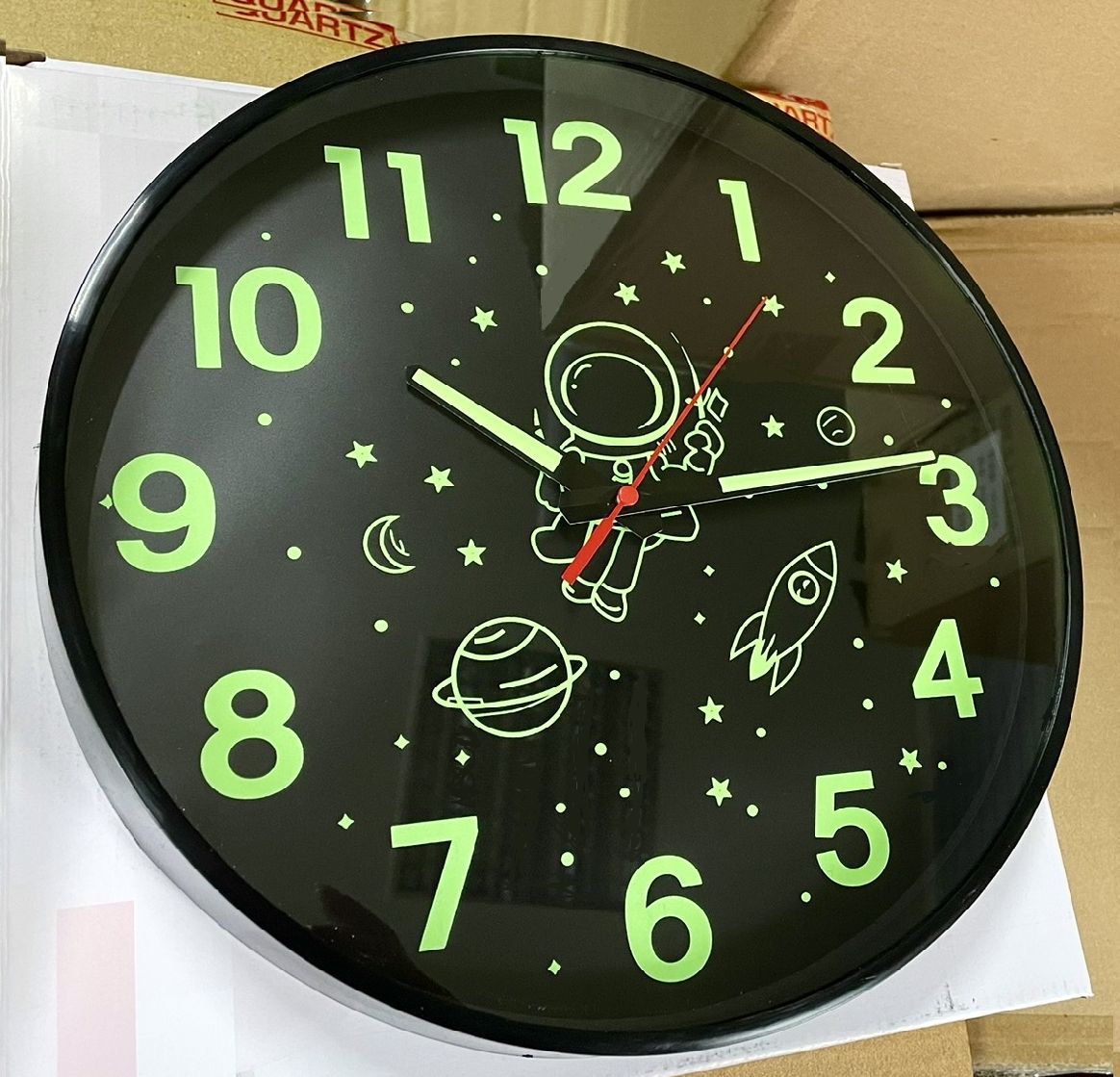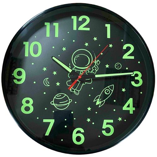 Фосфорний Безшумний Настінний Годинник Світиться Круглий (30 см) Дитячий Timelike™ Ph-01-Bf чорний