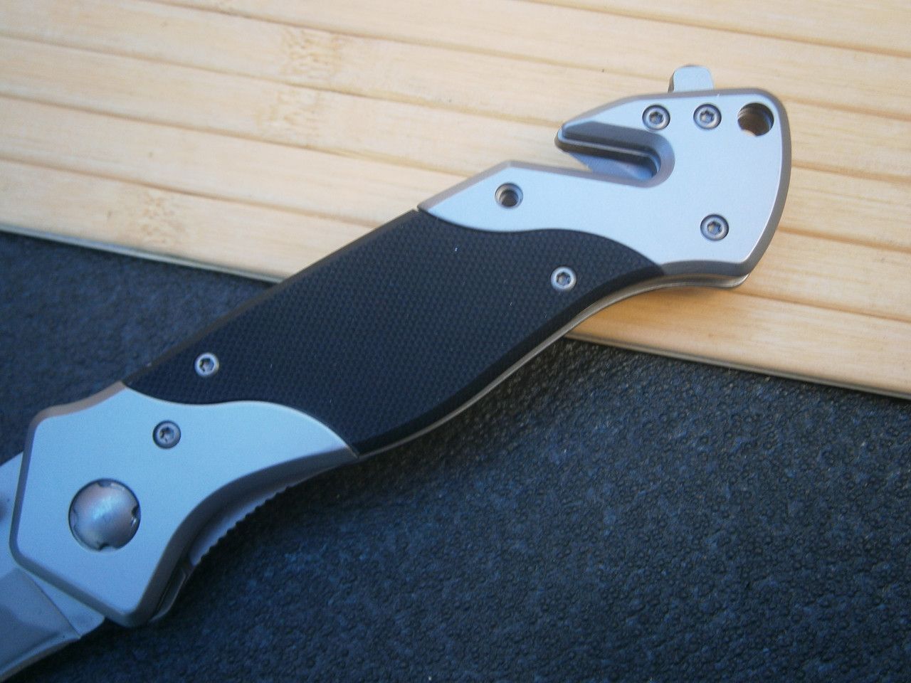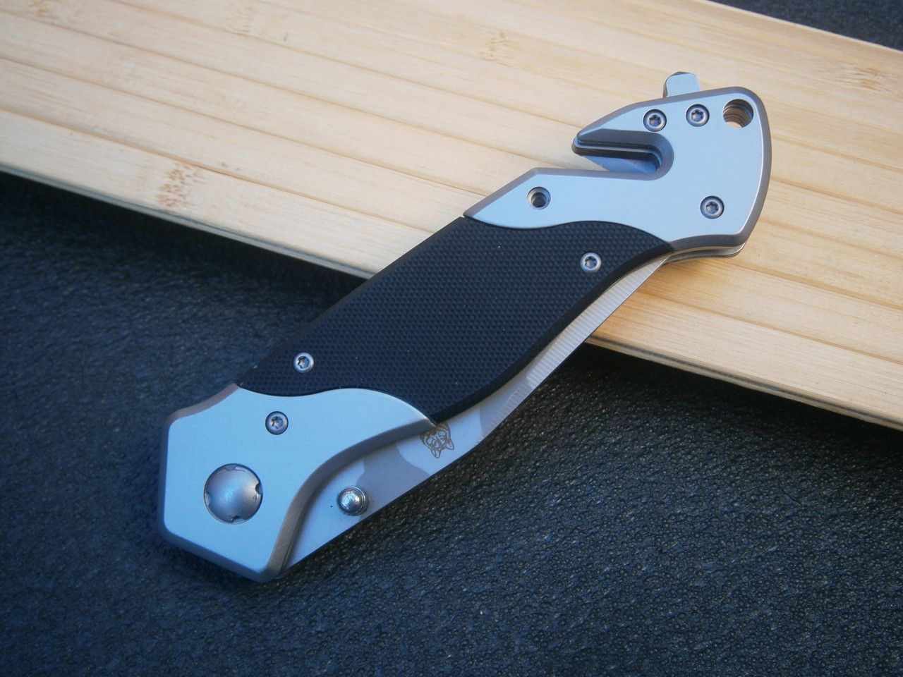 Ручка ножа виконана із металу з накладками із G-10, що робить її міцною і стабільною. Рукоять оснащена стропорізом, склобоєм і кліпсою для кріплення ножа на ремені, рюкзаку, або системі "моллі ".