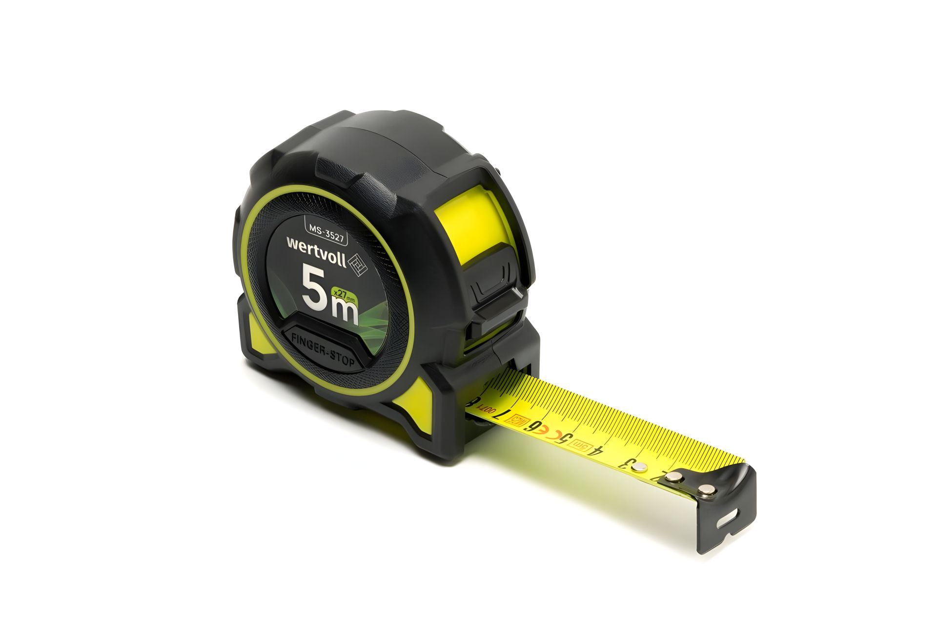 Рулетка 5 м × 27 мм – відмінний вибір для будівельних, монтажних та побутових робіт, де потрібна висока точність та надійність. • довжина 5 м, ширина стрічки 27 мм — для точних вимірювань з хорошою жорсткістю