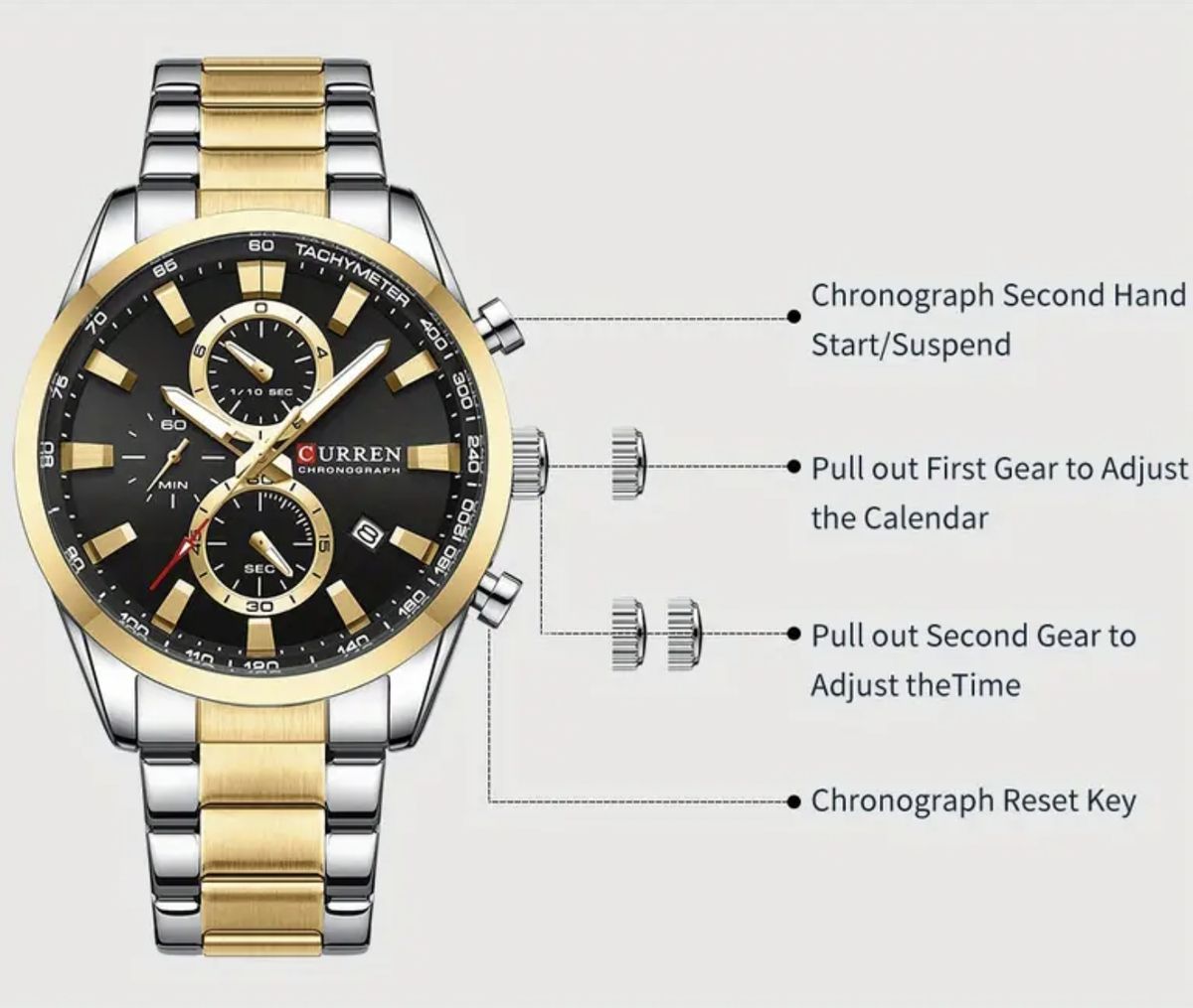 Curren - це відомий бренд кварцових годинників, який на ринку з 2001 року. Годинники цього бренду відрізняються не тільки стильним дизайном, але й високою якістю збірки, що забезпечує їх надійність і довговічність. Ці годинники стануть відмінним доповненням до будь-якого стилю одягу. Будь-то формальний одяг чи спортивний стиль, годинники Curren підкреслять вашу індивідуальність та зроблять вас помітним серед натовпу. Однак, крім свого естетичного вигляду, годинники Curren також гарантують точний хід. Завдяки надійному кварцовому механізму, вони будуть надійно показувати час протягом тривалого періоду. Загалом, годинники Curren поєднують в собі якість, дизайн й функціональність, що робить їх відмінним вибором для всіх, хто цінує стиль і якість годинників. В комплекті йде офіційна гарантія на 12 місяців.