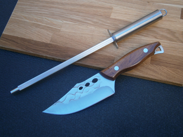 Виготовлений ніж із нержавіючої сталі 5Cr13MoV (0,5% вуглець, 13% хром, молібден, ванадій), що відрізняється високими показниками корозійної стійкості, а також простотою виправлення вертляної кромки.