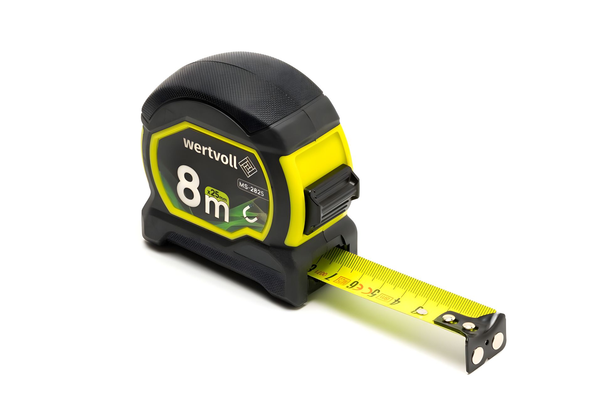 Рулетка 8 м × 25 мм з магнітами - відмінний вибір для професіоналів та домашніх майстрів, які цінують точність та зручність у роботі. • довжина 8 м, ширина стрічки 25 мм – підходить для професійних вимірювань