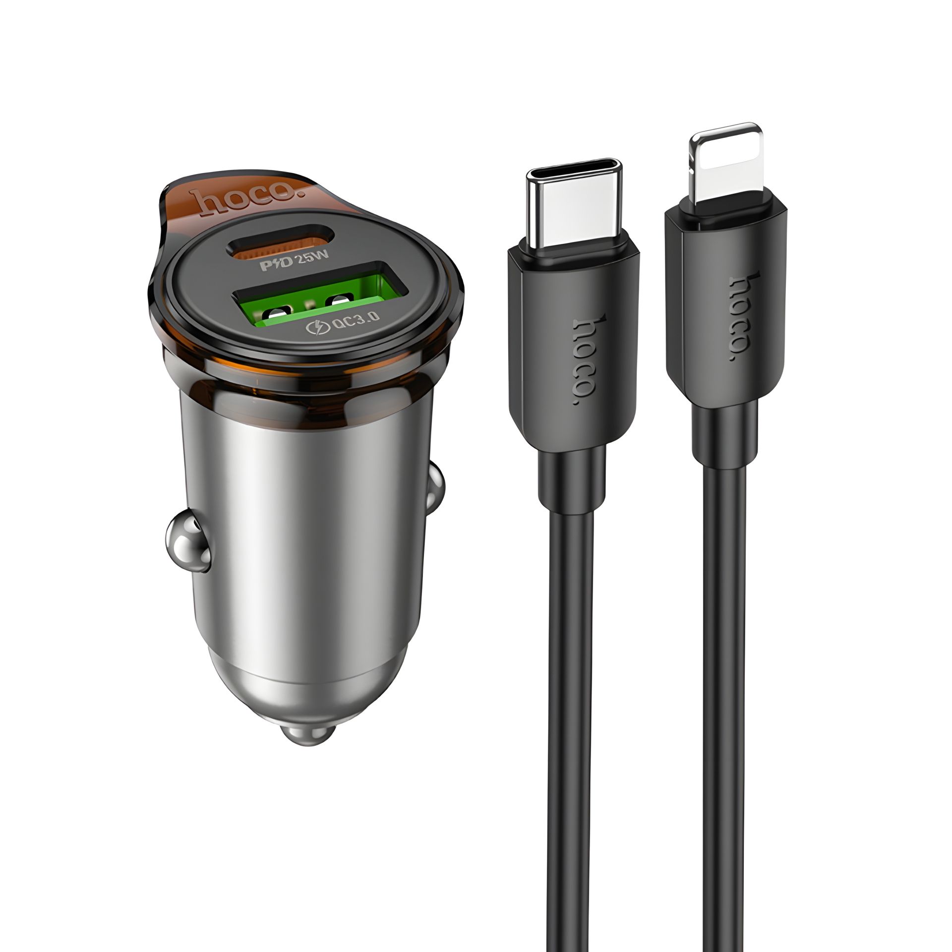 Автомобільне ЗУ Hoco Z32B PD+QC3.0 (1USB/1USB-C/4A) + Type-C to iPhone Gray кабель