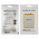 Borofone - бренд є одним з популярних виробників аксесуарів, маленьких гаджетів та інших дрібних товарів. Це відгалуження відомого бренду Hoco в бік демократизації цін. Завдяки великому асортименту продукції та високим продажам вони забезпечують хороше співвідношення ціни та якості. Рекомендуємо продукцію цього бренду серед аналогів. Акумулятори цього бренду є повною заміною оригінального акумулятора. Поставляється в технічній упаковці (мішок, плівка).