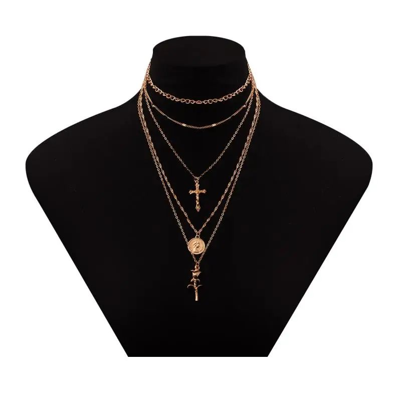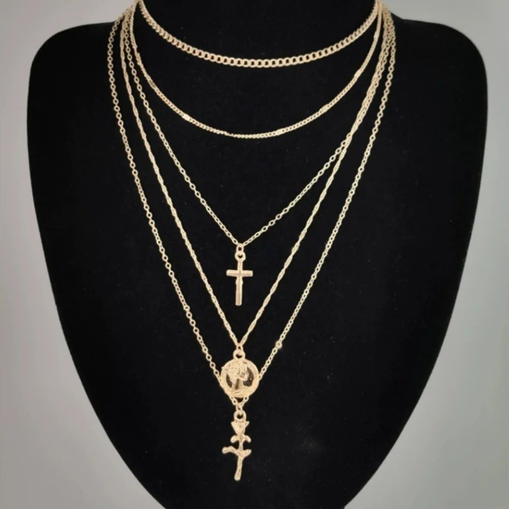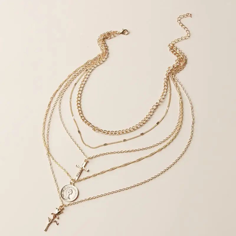 Намисто багатошарове кольє підвіска із хрестом квіткою