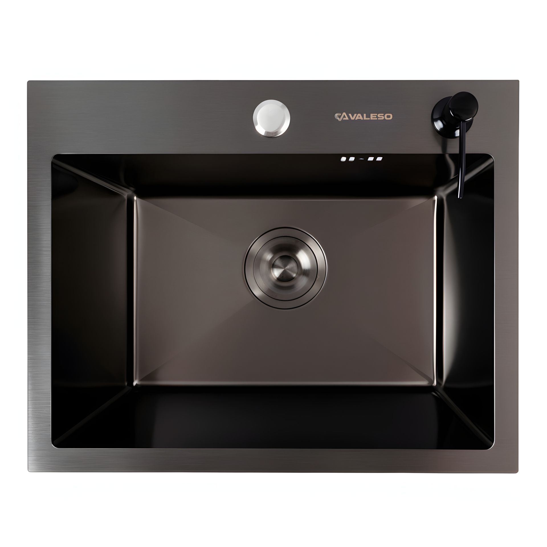 Кухонна мийка VALESO Handmade PVD 600х450х220 чорна (дозатор в комплекті)