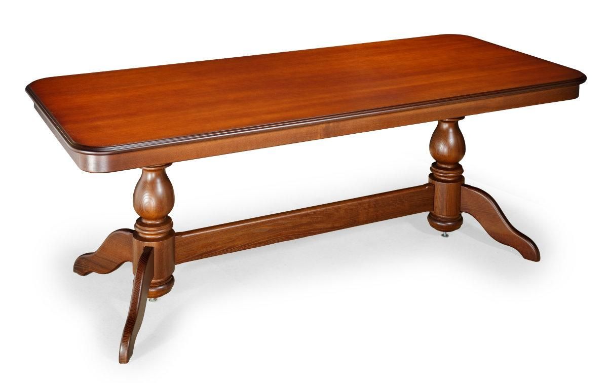 Для виготовлення стільниці використовується плита МДФ, покрита шпоном натурального дерева (вільха, ясен, клен), або термостійким пластиком – за Вашим бажанням. Ізножье столу виконано з масиву дерева (вільха, ясен).