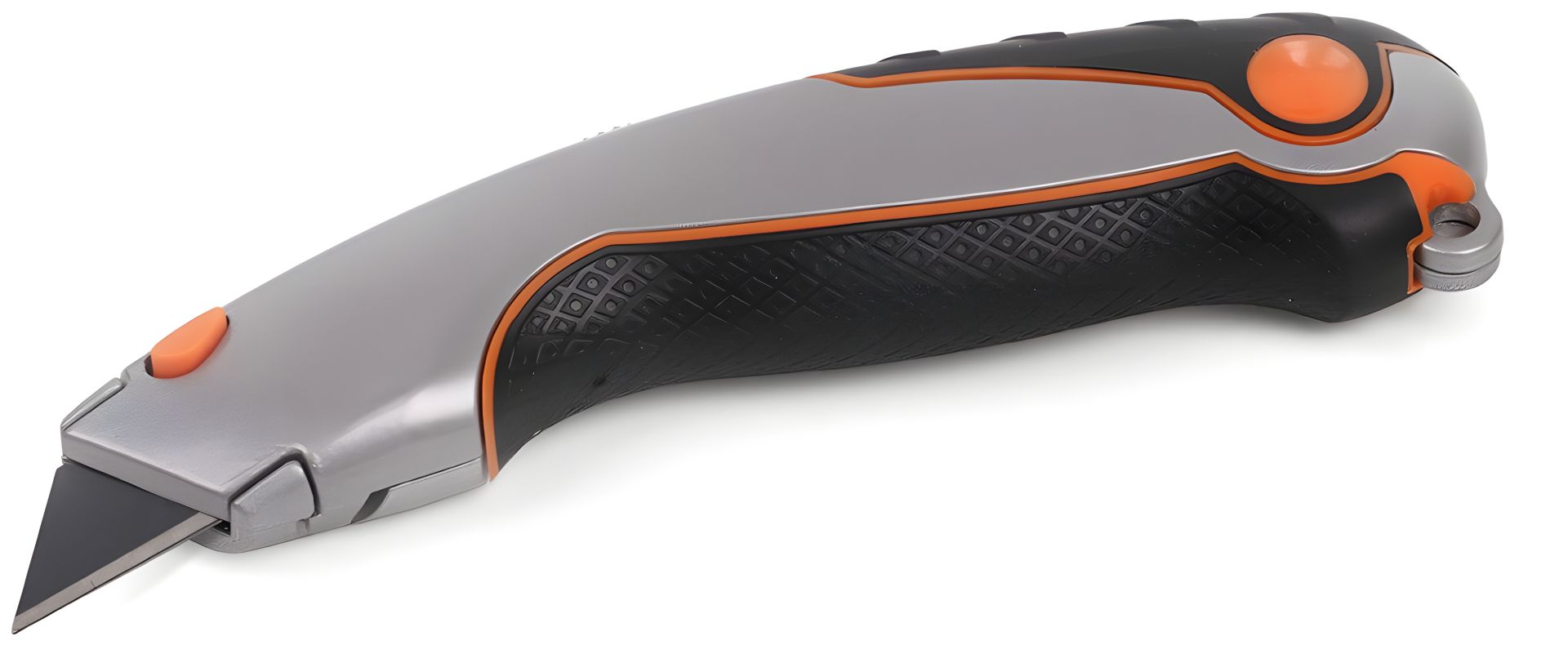 Надійний та зручний ніж з трапецієподібним лезом шириною 19 мм, який відмінно підходить для будівельних, складських, офісних та побутових робіт. Металевий корпус у поєднанні з міцними матеріалами AL+ABS+TPR забезпечує довговічність, комфорт та безпечний хват. Ергономічна форма з гумовою ручкою дозволяє легко контролювати процес різання.