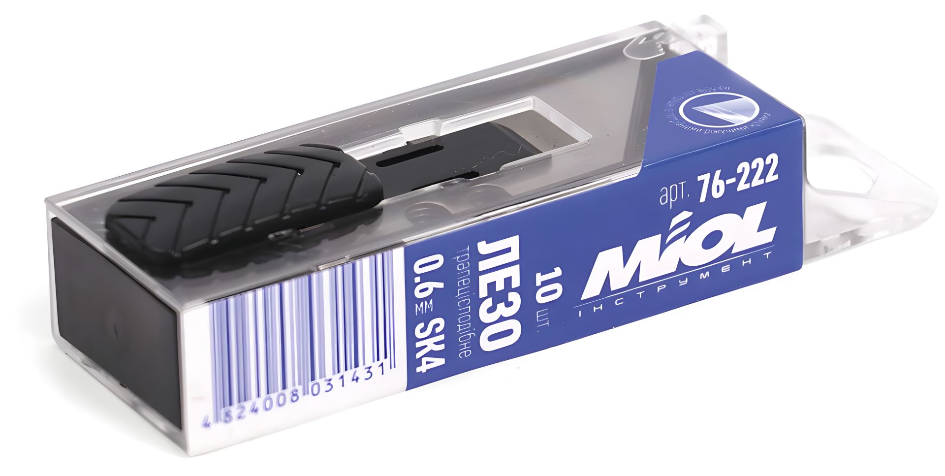Трапецієподібні змінні леза Miol виготовлені з високоякісної інструментальної сталі SK4 , що забезпечує підвищену міцність, довговічність та тривалий термін служби. Призначені для використання в будівельних та канцелярських різачках. Ідеально підходять для різання картону, гуми, лінолеуму, пластику, шкіри та інших матеріалів.