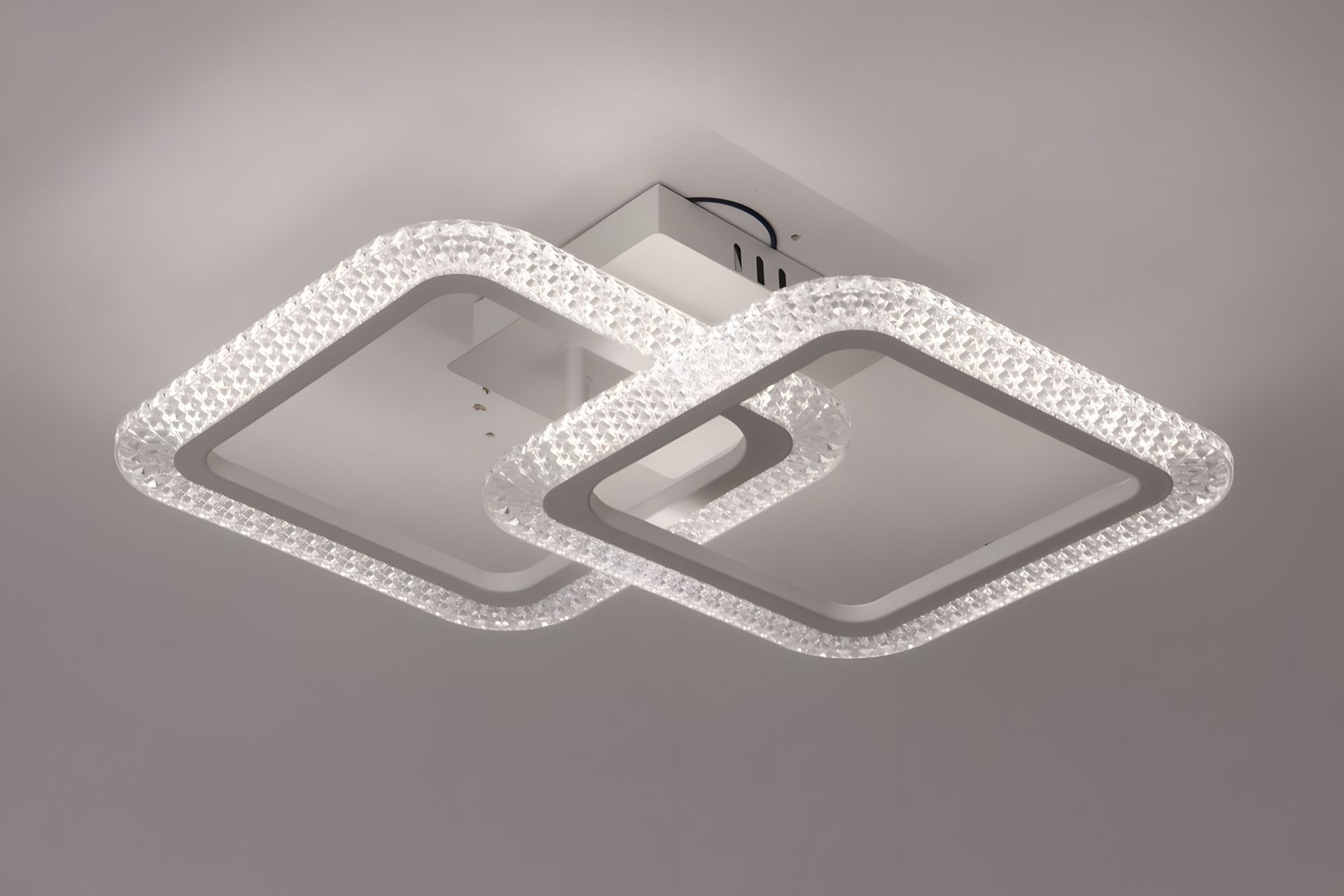 Люстра світлодіодна V K38839-2 WT — сучасний стельовий світильник у білому кольорі, який поєднує лаконічний дизайн і функціональність. Конструкція складається з двох світлових елементів у формі квадратів, виконаних із металу та акрилу. Завдяки такому рішенню світло рівномірно розподіляється в просторі, створюючи комфортне освітлення без засліплення.