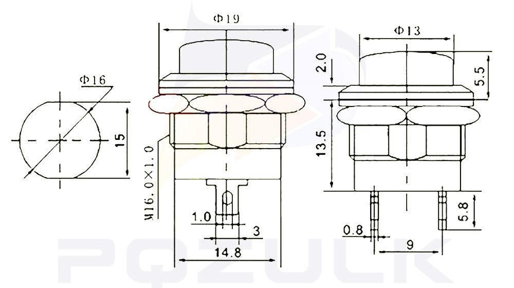 Діаметр по різі 15 мм. Діаметр кнопки: 12 мм.