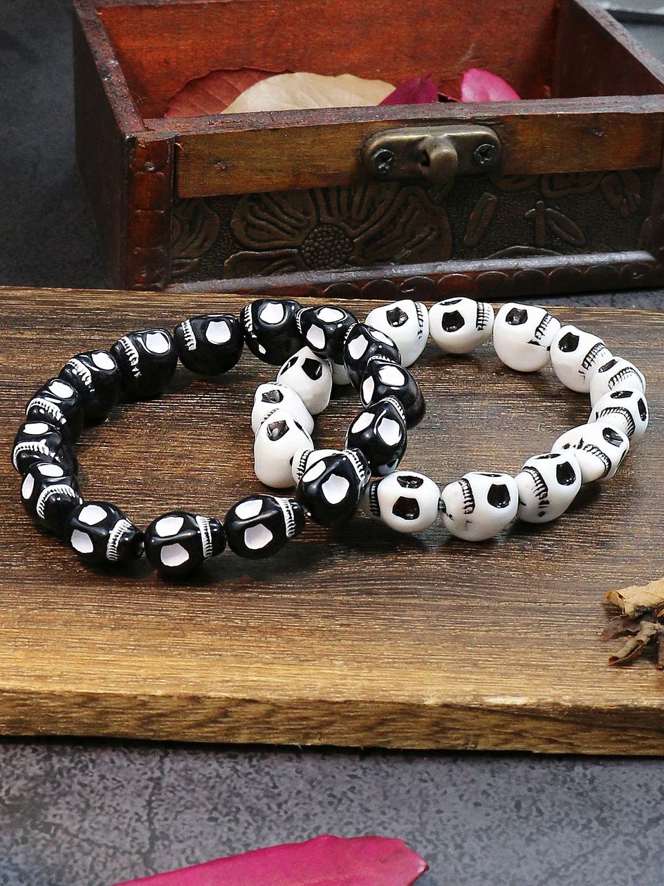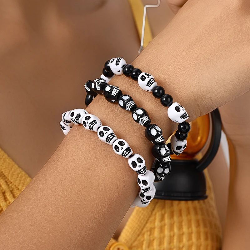 Браслет Skull черепи натуральний камінь з черепом білий колір