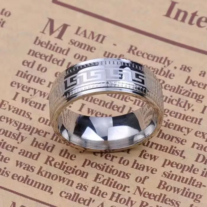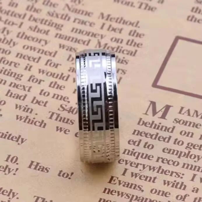 Кільце чоловіче із візерунком велика стіна з титанової сталі 8 мм перстень срібний колір