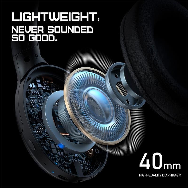 - 40-мм динаміки забезпечують глибокі баси, чіткі високі частоти та насичений звук.