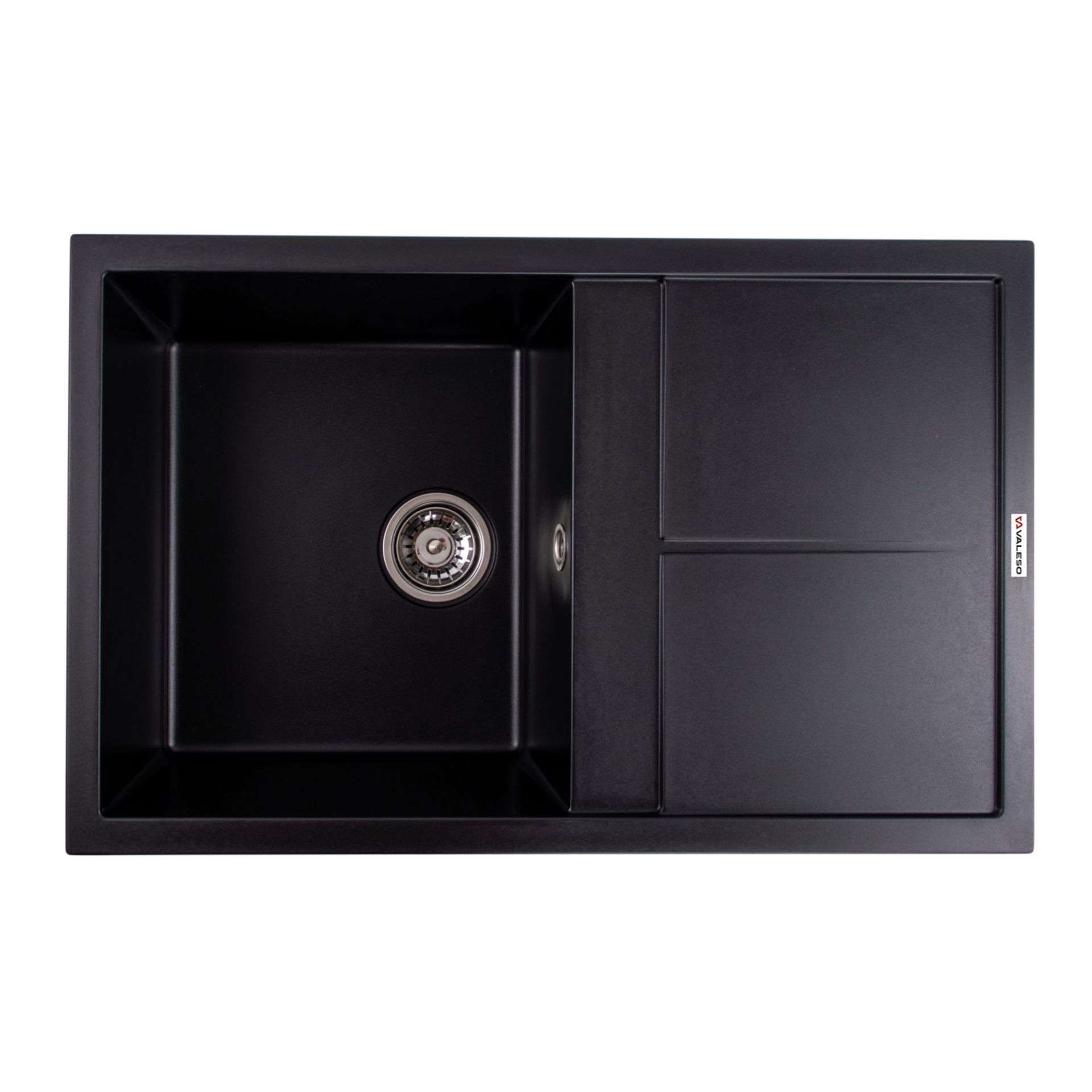 Елегантна гранітна мийка VALESO 7950 SELENA Серце цього набору — мийка VALESO 7950 SELENA у глибокому чорному кольорі. Виготовлена з 80% кварцу, вона надзвичайно стійка до подряпин, ударів, високих температур та УФ-променів, зберігаючи свій ідеальний вигляд роками. Простора чаша (377x430x200 мм) робить її зручною для щоденного використання. Мийка має матову фактуру, що додає їй загадковості та елегантності.