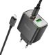 Мережевий зарядний пристрій Hoco CS34A, 2USB, QC 18W, USB to Type-C, Чорний