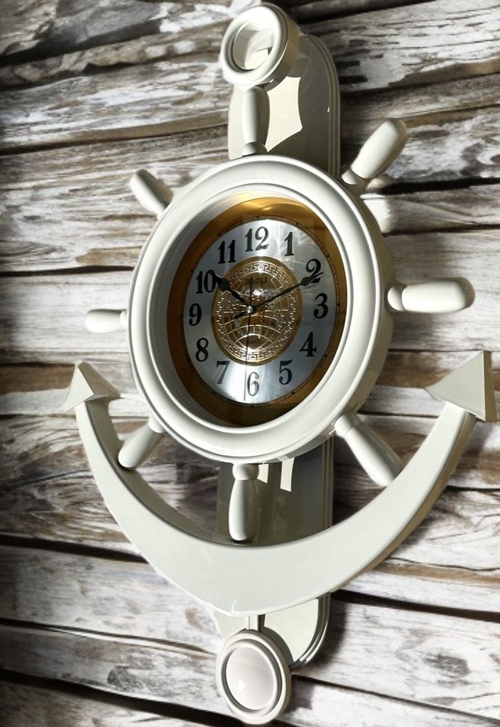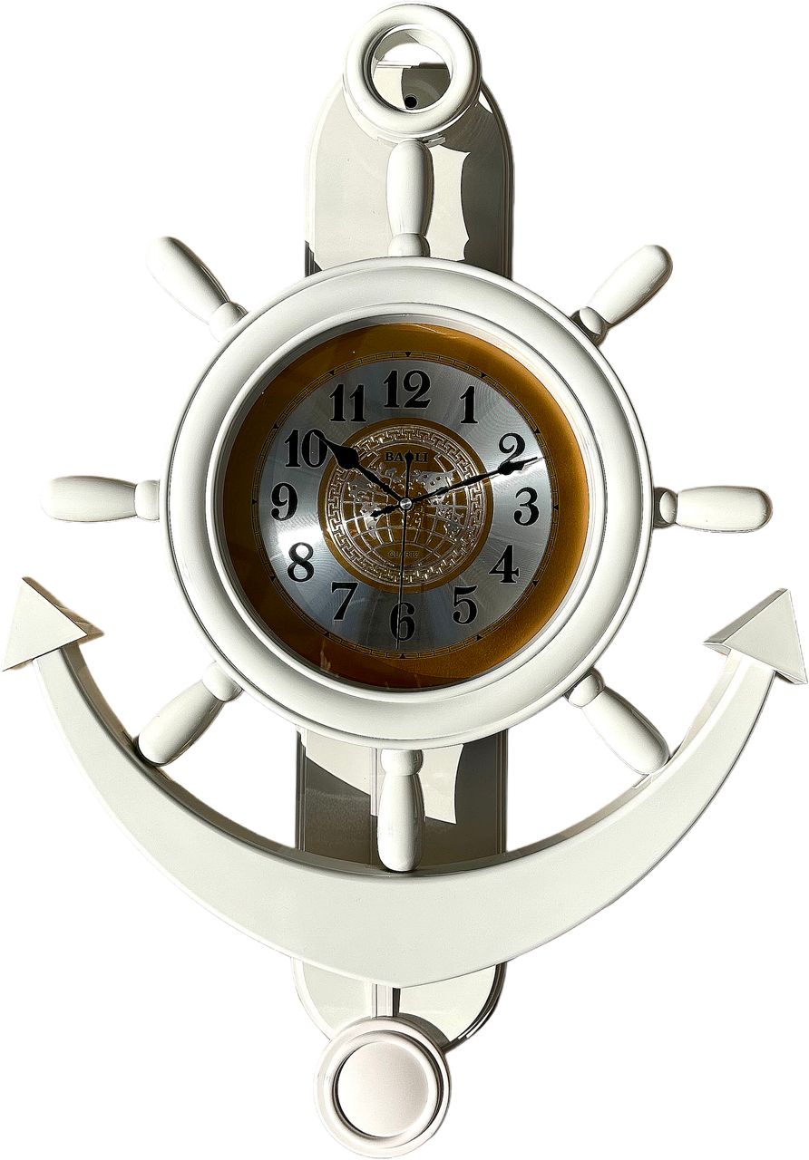 Настінний годинник Якір Морський (80х50 см) Штурвал з маятником BAOLI білий