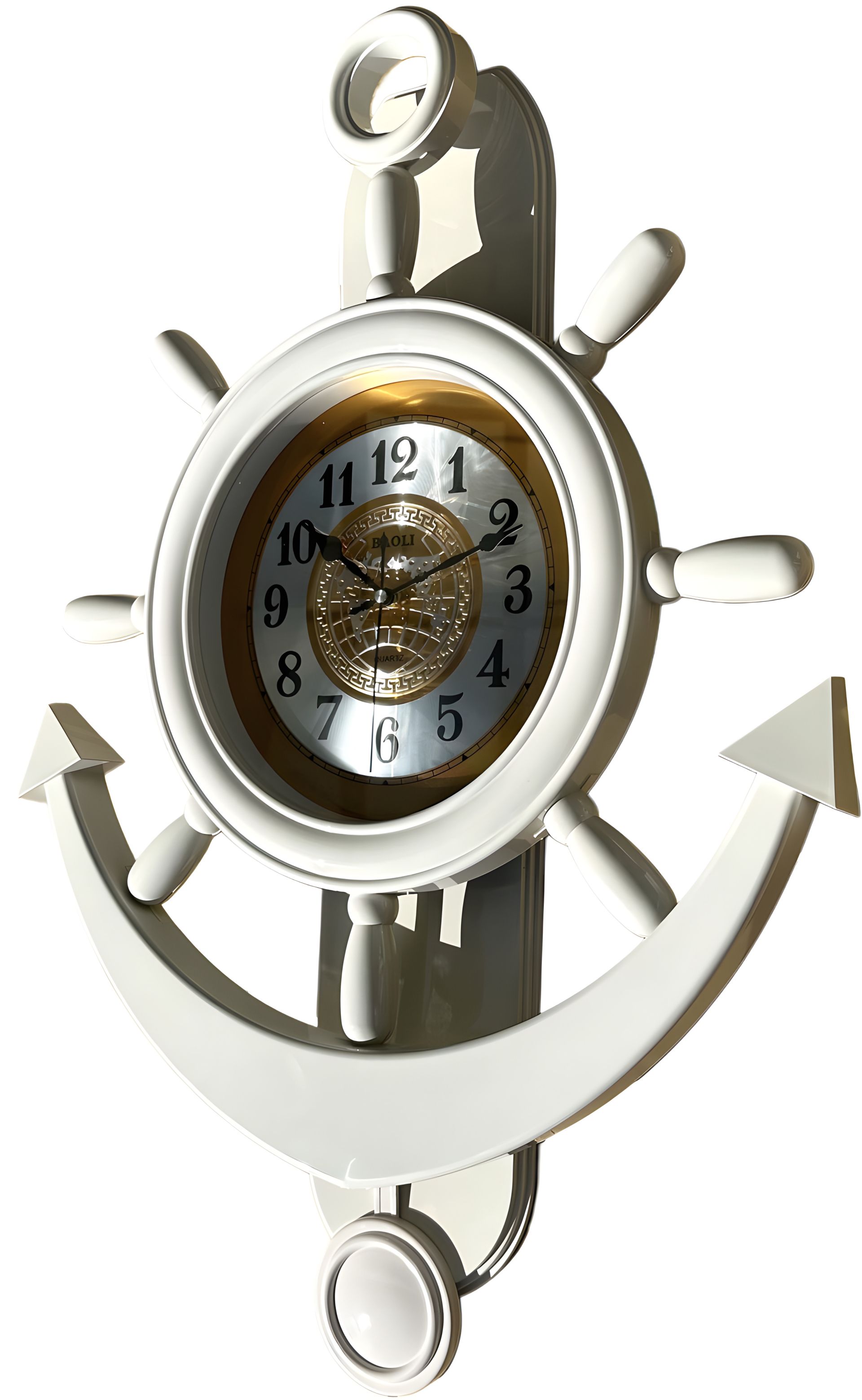 Настінний Морський Якір годинник (80х50 см) Штурвал з маятником BAOLI білий