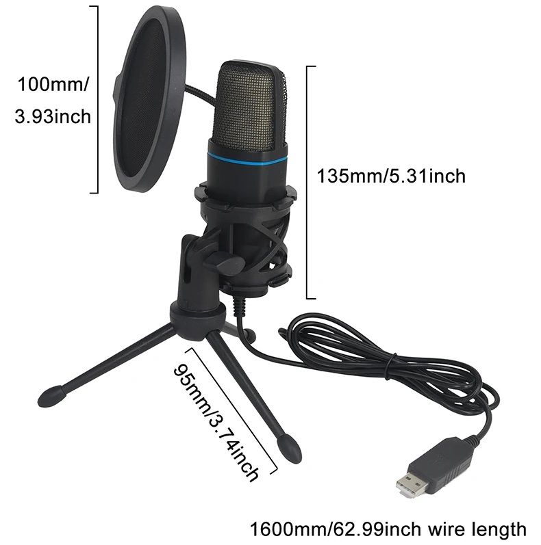 Мікрофон USB, ігровий, RGB, Condensador Wire Gaming Mic for Podcast Recording Studio, Streaming, Laptop, Desktop PC, 1.6m, Black