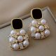 Сережки перлини у формі квадрата кубічний цирконій з перлинами чорні