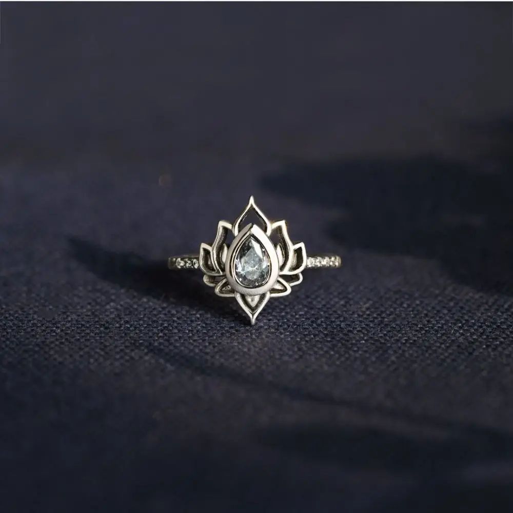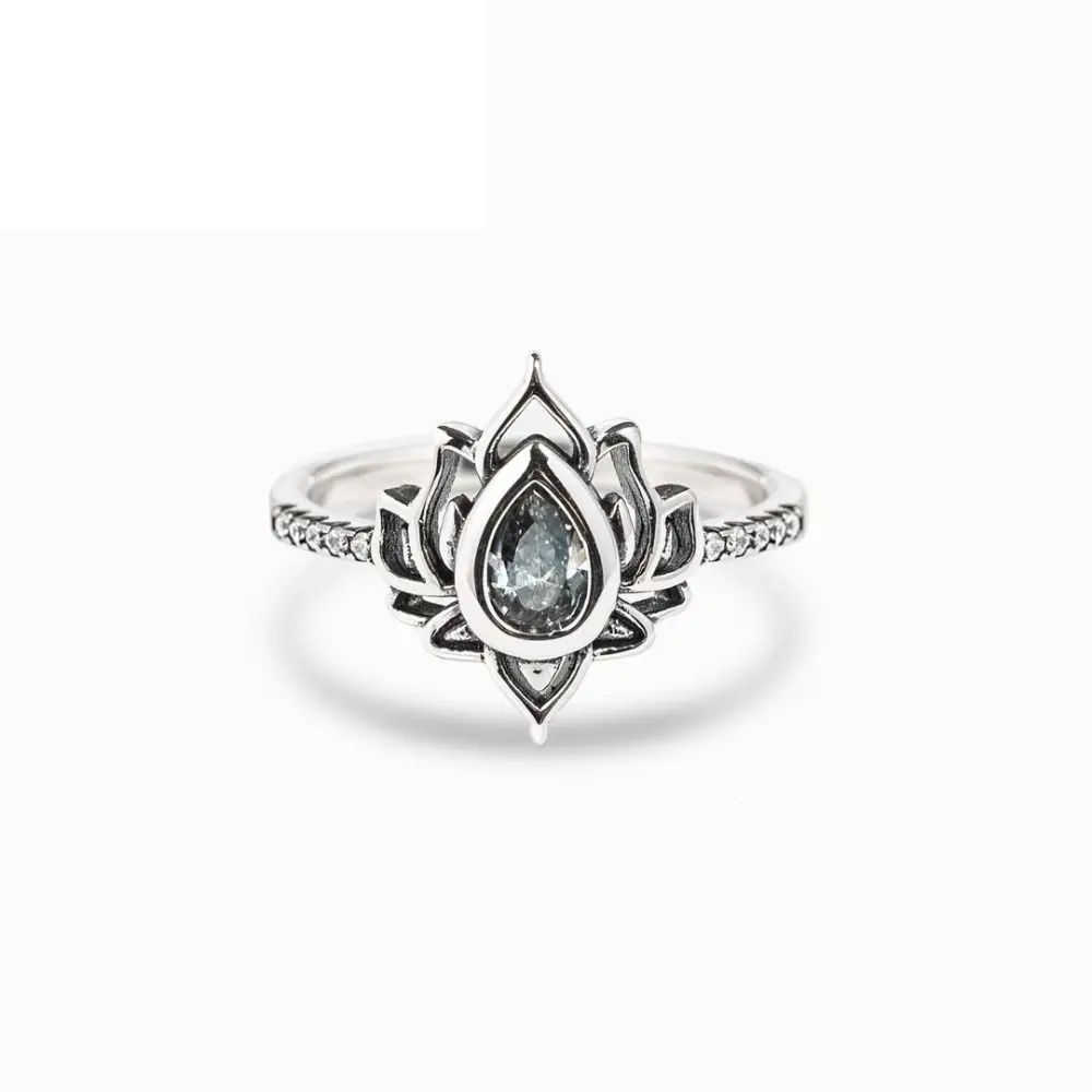 Вишукане кільце квітка лотос у стилі бохо з голубими кристалами камінням