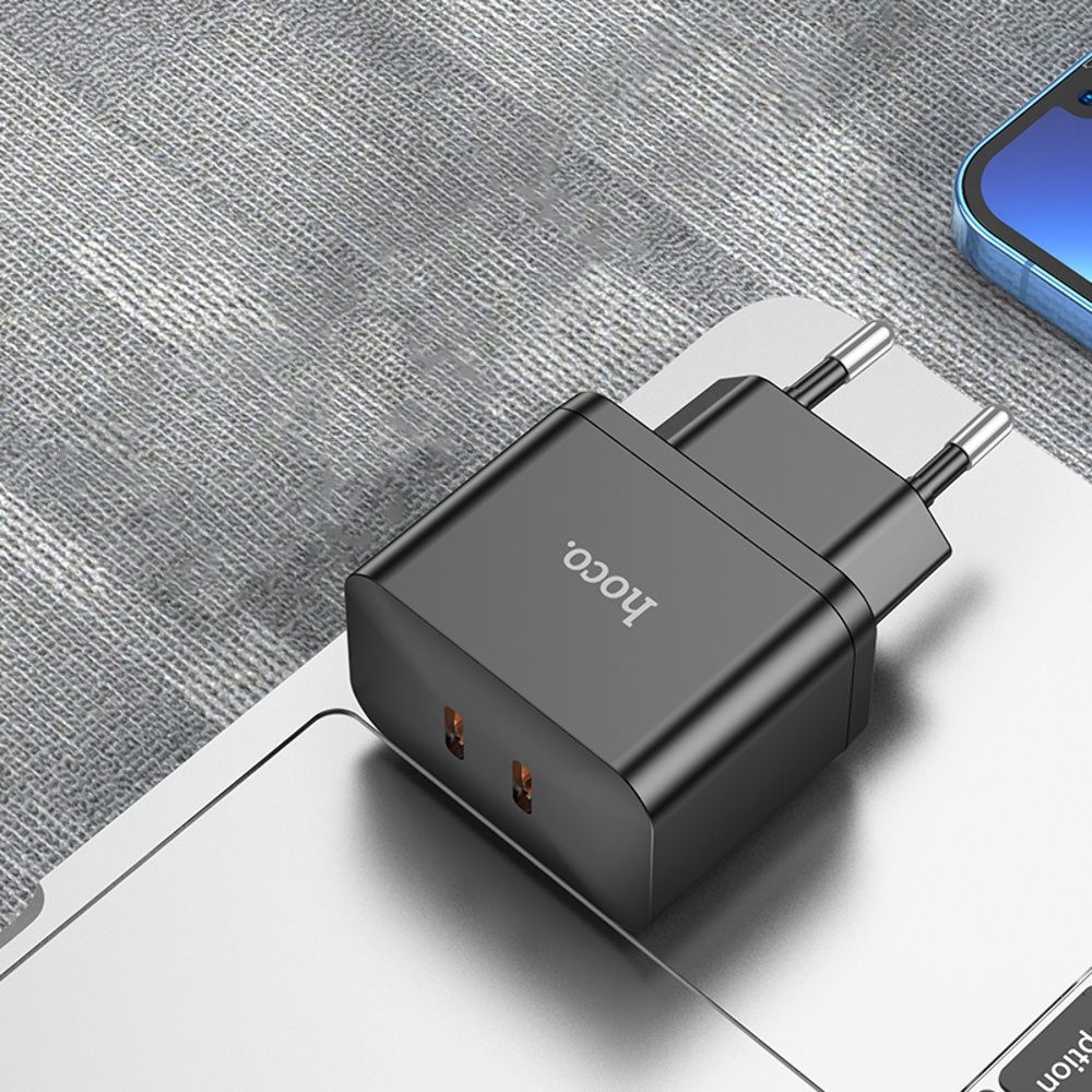 Мережевий зарядний пристрій Hoco N29, 2 Type-C, PD 35W, чорний