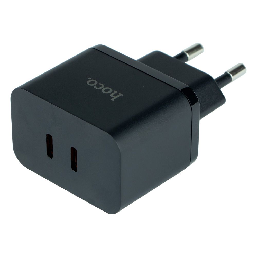 Мережевий зарядний пристрій перехідник Hoco AC18, 2 USB, Type-C, PD 35W, black