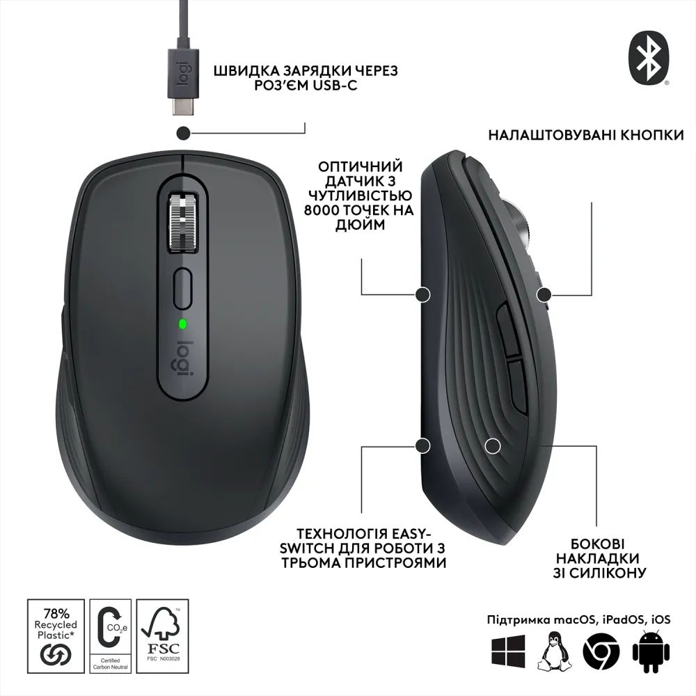 Бездротова миша Logitech MX Anywhere 3S, 8000DPI, BT, Graphite (910-006929)